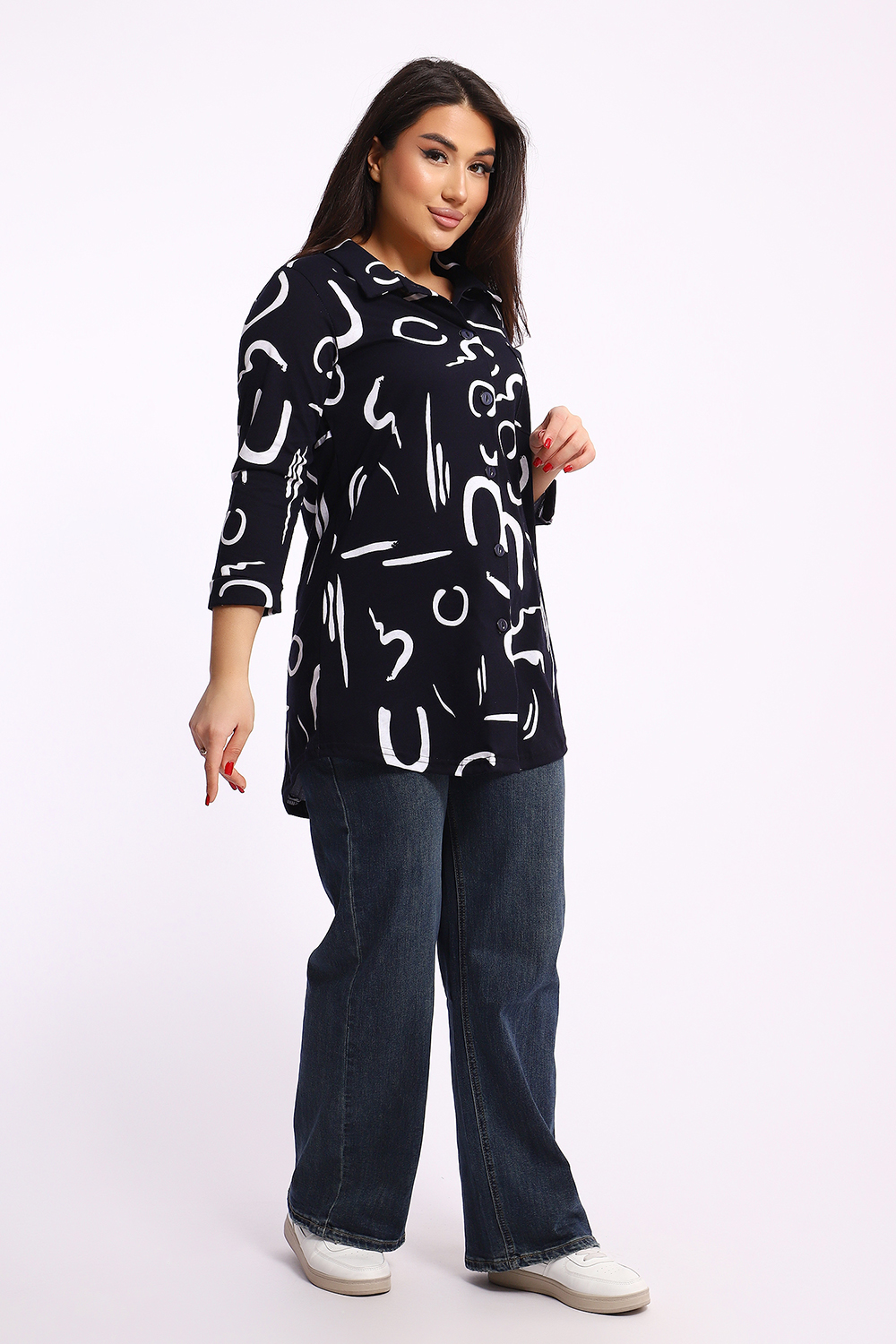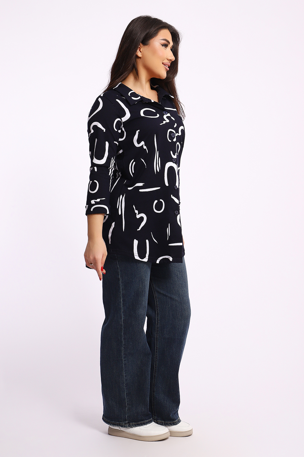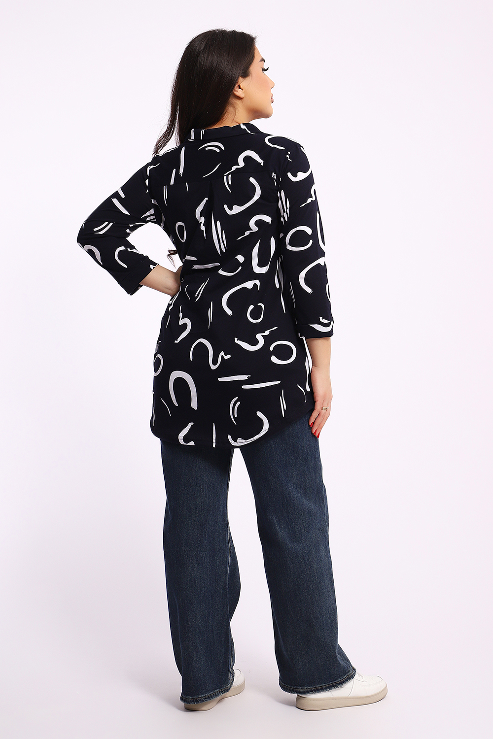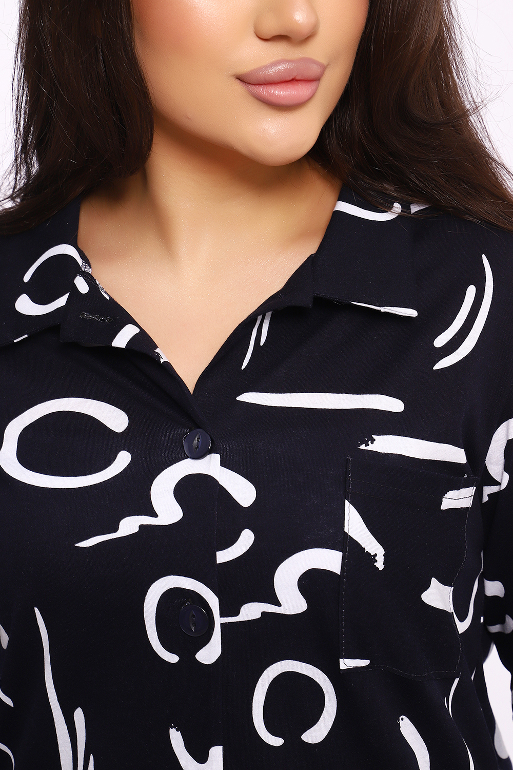Женская туника-рубашка на пуговицах выполнена из хлопкового трикотажного полотна. Изделие свободного покроя с оригинальным комбинированием прекрасно подойдет для любителей комфорта в стильных вещах.