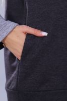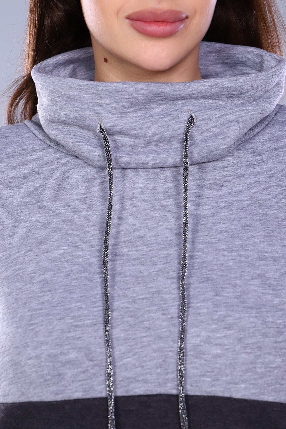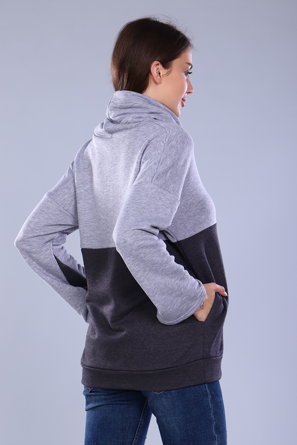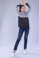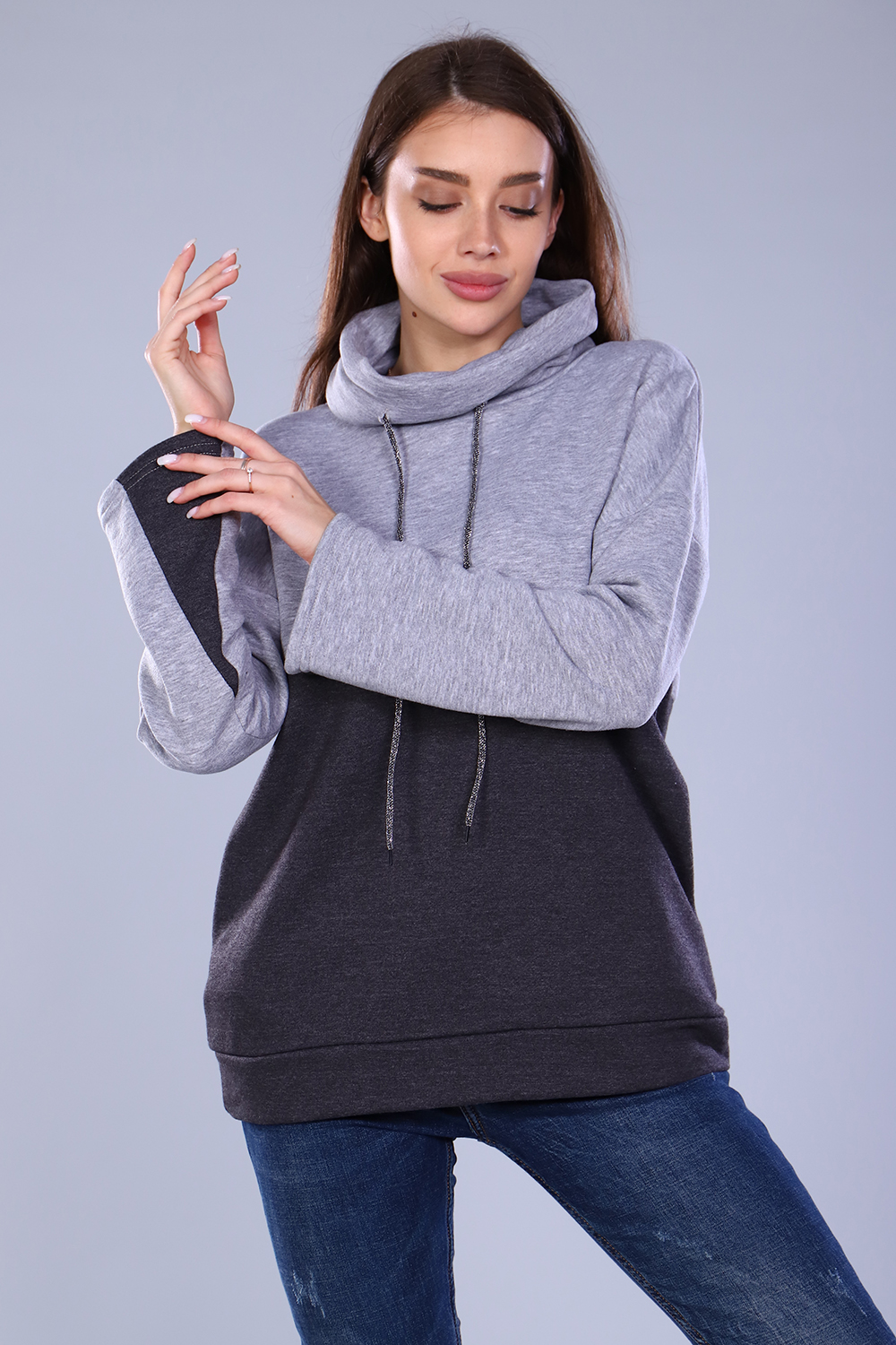 Туника женская с интересным и оригинальным свободным кроем из комбинированного футера 3-х нитка петля качества пенье. Модель удлиненная, линия плеча спущена, длинный рукав декорирован вставкой из компаньона, низ на манжете из основной ткани, в боковых швах удобные карманы. Цельнокроенный хомут со шнуром с металлизированными нитями люрекса прекрасно драпируется и помогает создать несколько интересных вариантов для вашего неповторимого образа. Эта туника для тех, кто ценит стиль и удобство. Вы непременно будете выглядеть модно, смело, интересно!