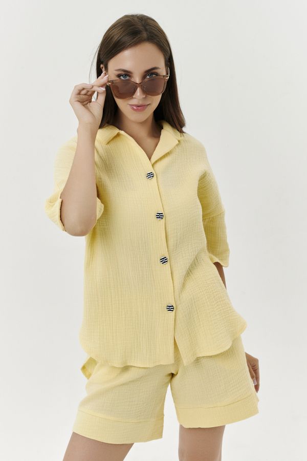 Женская туника - рубашка в стиле oversize выполнена из 100% хлопчатобумажного полотна. Модель дополняет рубашечный воротник, планка и паты с растёгивающимися кнопками, делая её более удобной и комфортной. Интересный рисунок ткани в сочетании с трендовыми цветами сезона делают рубашку невероятно популярной и любимой вещью Вашего гардероба.