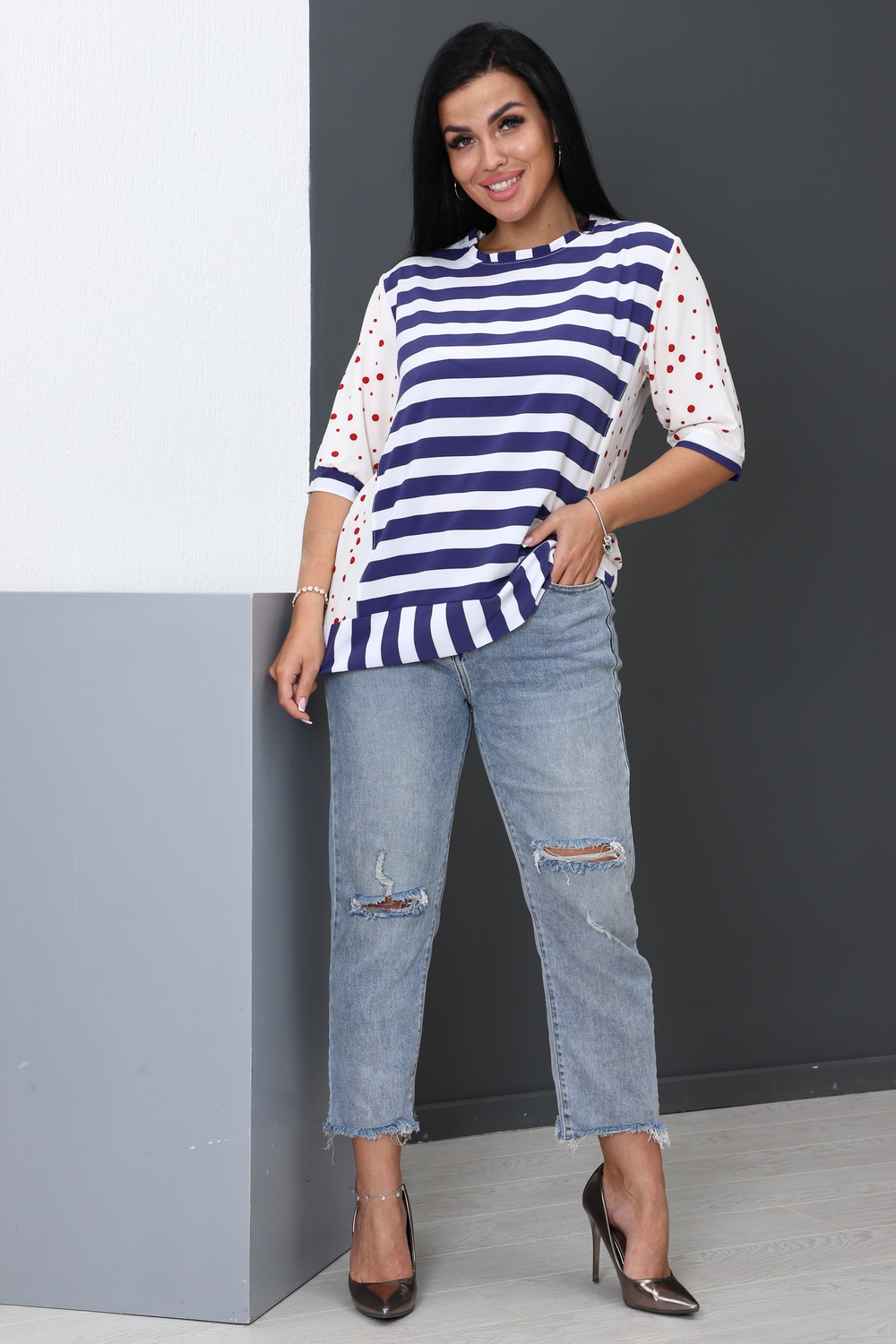Туника женская летняя прямого силуэта, округлый воротник, рукав 3/4 (длина от шва)на манжете, низ изделия также на манжете. Легкая и удобная.