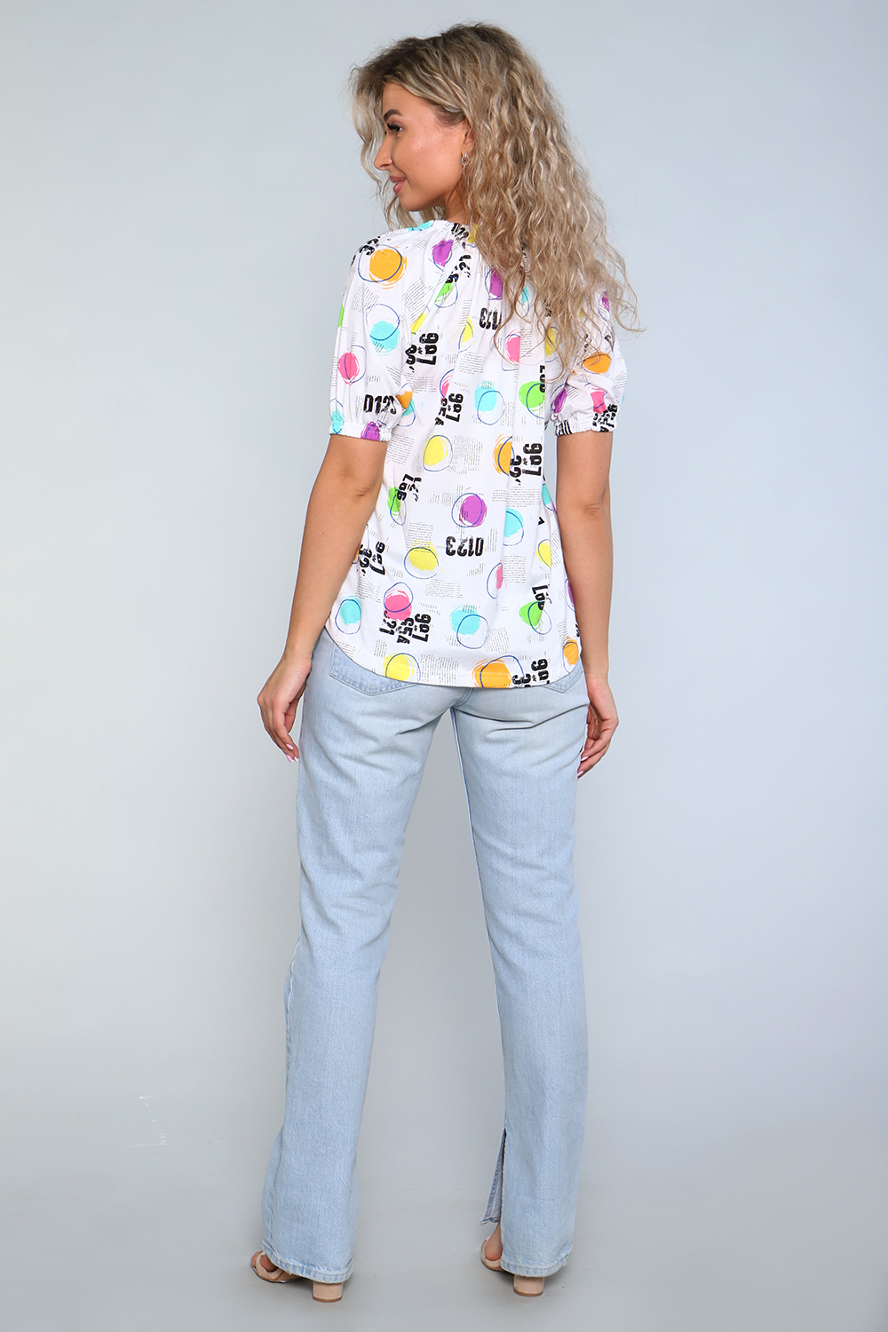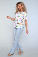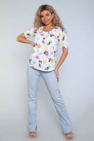Туника полуприлегающего силуэта с короткими рукавами - реглан и полукруглым низом. Горловина и низ рукавов обработаны с эластичной тесьмой. Комфортна для повседневной носки.