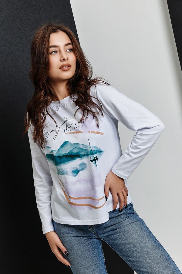Лонгслив женский полуприлегающего силуэта с длинными рукавами и милым принтом. Удобная, модная, приятная к телу. Не стесняет движения. Яркие стойкие цвета соответствуют модным тенденциям. Современная тематика принтов делает эту модель отличным подарком девушкам налюбой праздник!