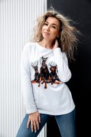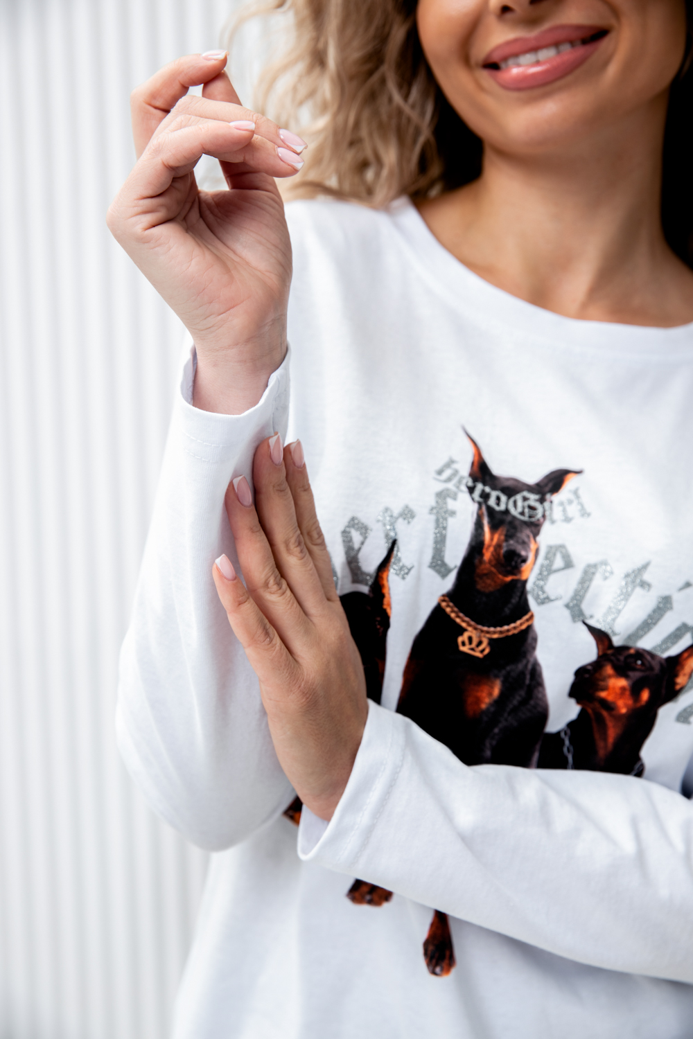 Туника женская полуприлегающего силуэта с длинными рукавами и ярким принтом.
