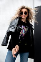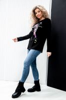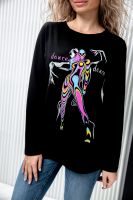 Туника женская полуприлегающего силуэта с длинными рукавами и ярким принтом.