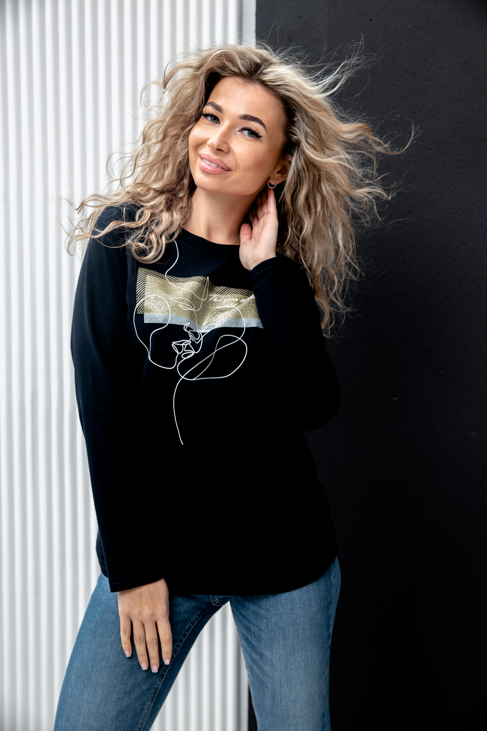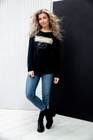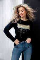Туника женская полуприлегающего силуэта с длинными рукавами и ярким принтом.