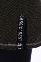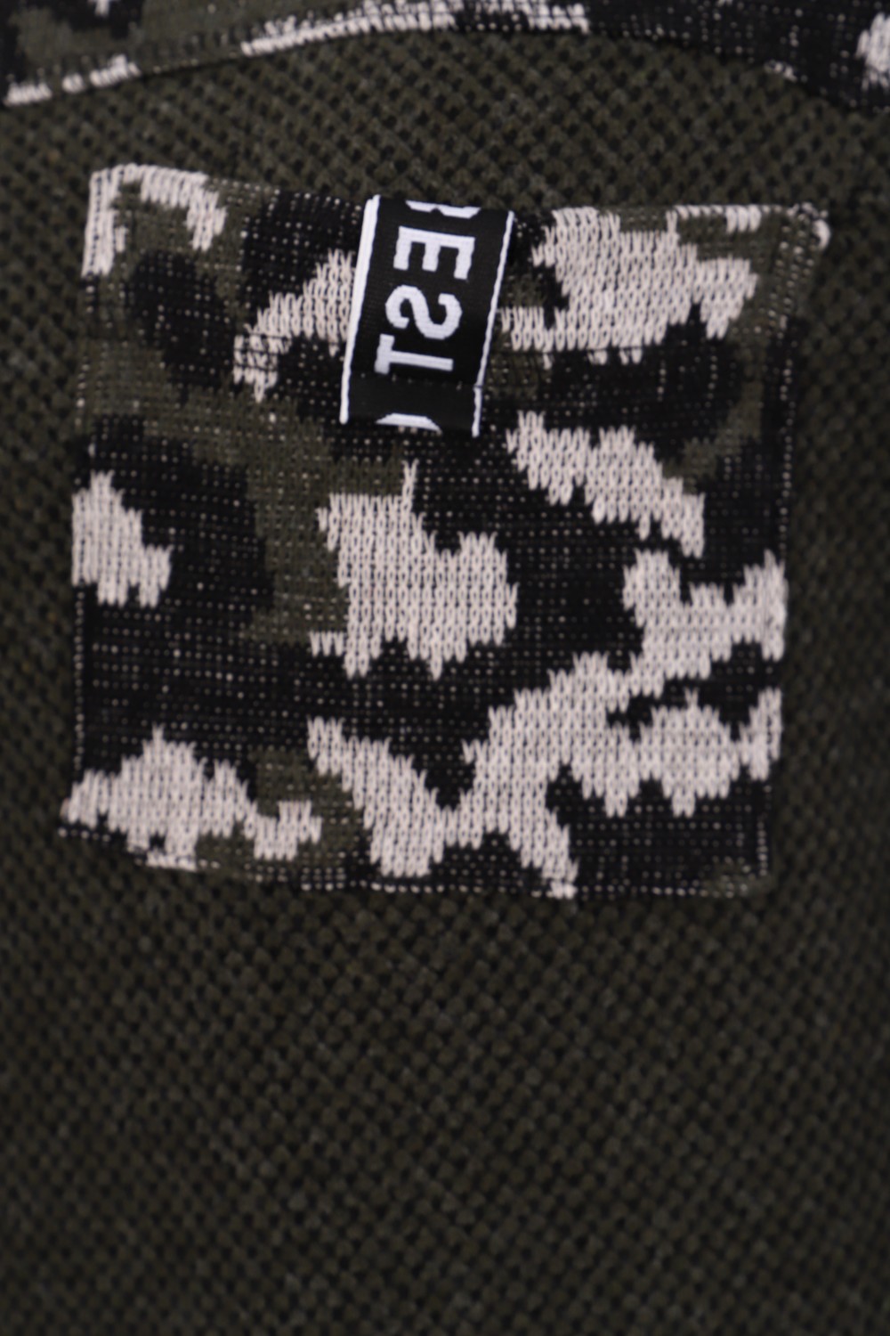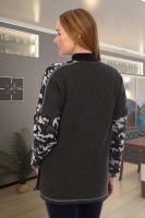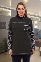 Туника женская прямого силуэта. Рукав цельнокроенный со швом. Воротник-стойка из кашкорсе. На полочке кокетка и нагрудный накладной карман, по плечевому шву лампас, по боковому шву разрезы. Вдоль линии разреза на полочке на кармане настрочена репсовая тесьма с буквами. Туника из однотонной ткани "Пике", плечевые лампасы, рукава, карман из ткани "Жакке" с модным сейчас принтом камуфляж.