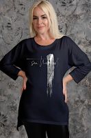 Туника женская. На полочке принт. По низу изделия отделка – тесьма.