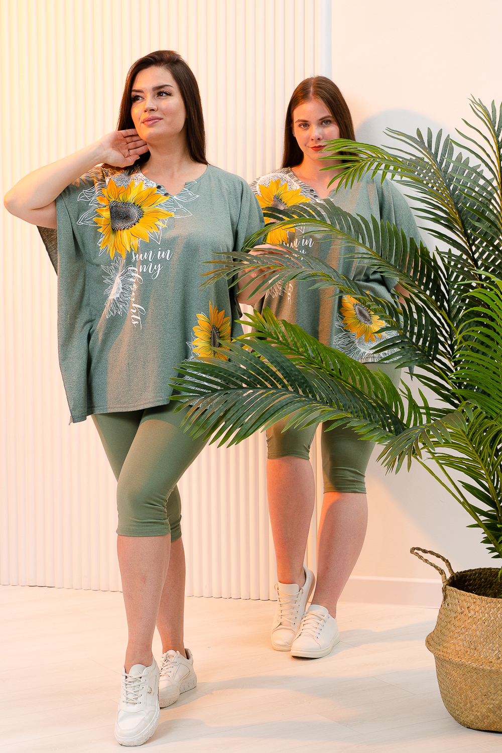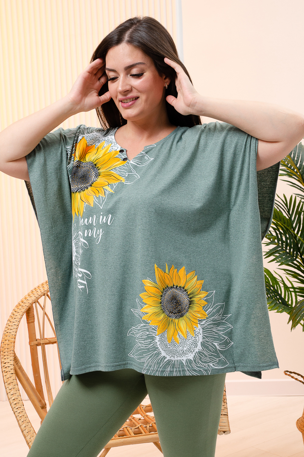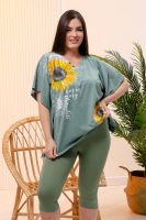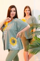 Летняя туника свободного прямоугольного кроя с ярким принтом. Ткань модели мягко «обнимает», создавая легкие рукава, ниспадающие красивыми складками. Оригинальный фасон туники позволяет чувствовать себя комфортно в жаркие летние дни.