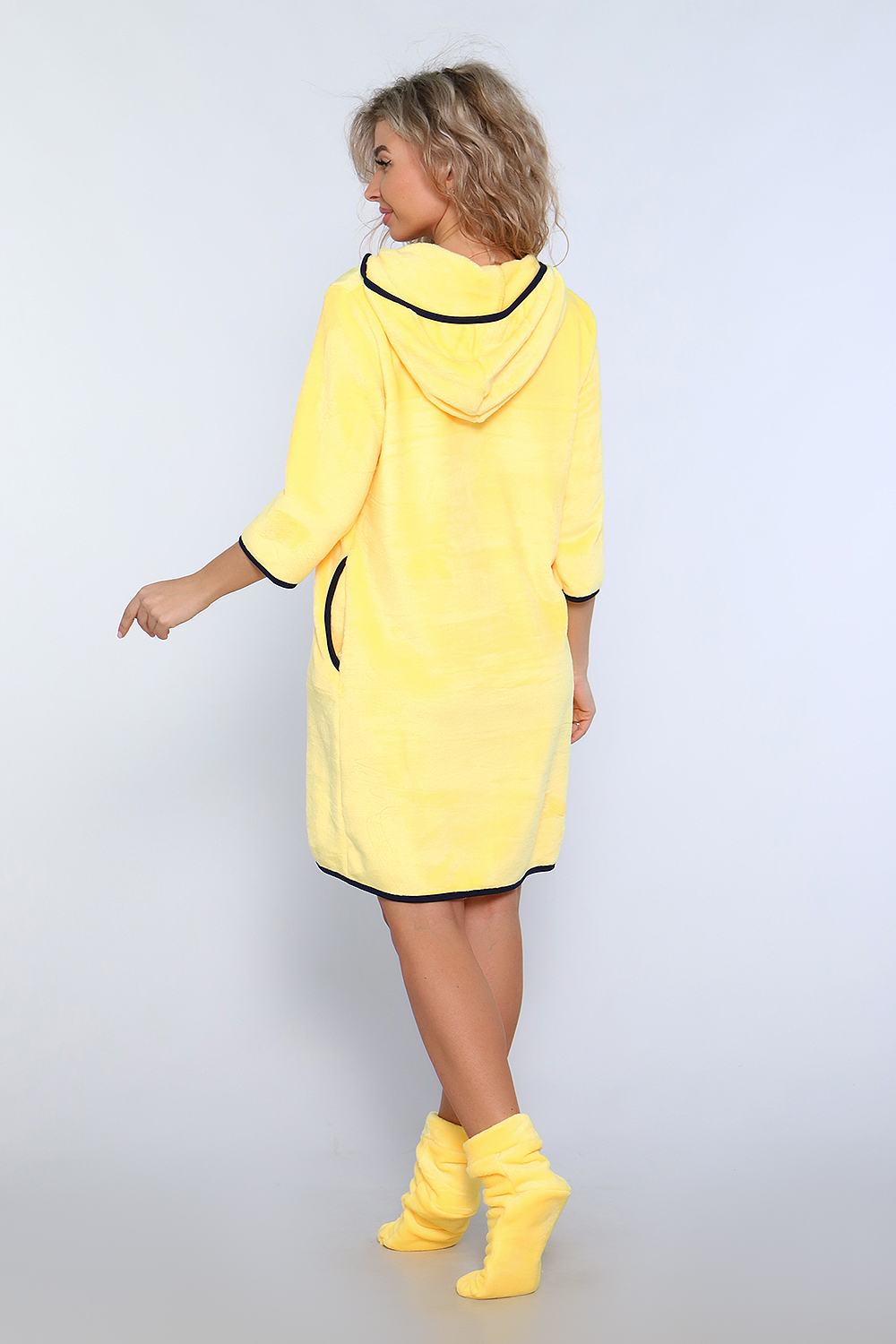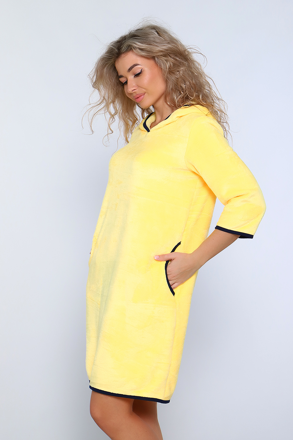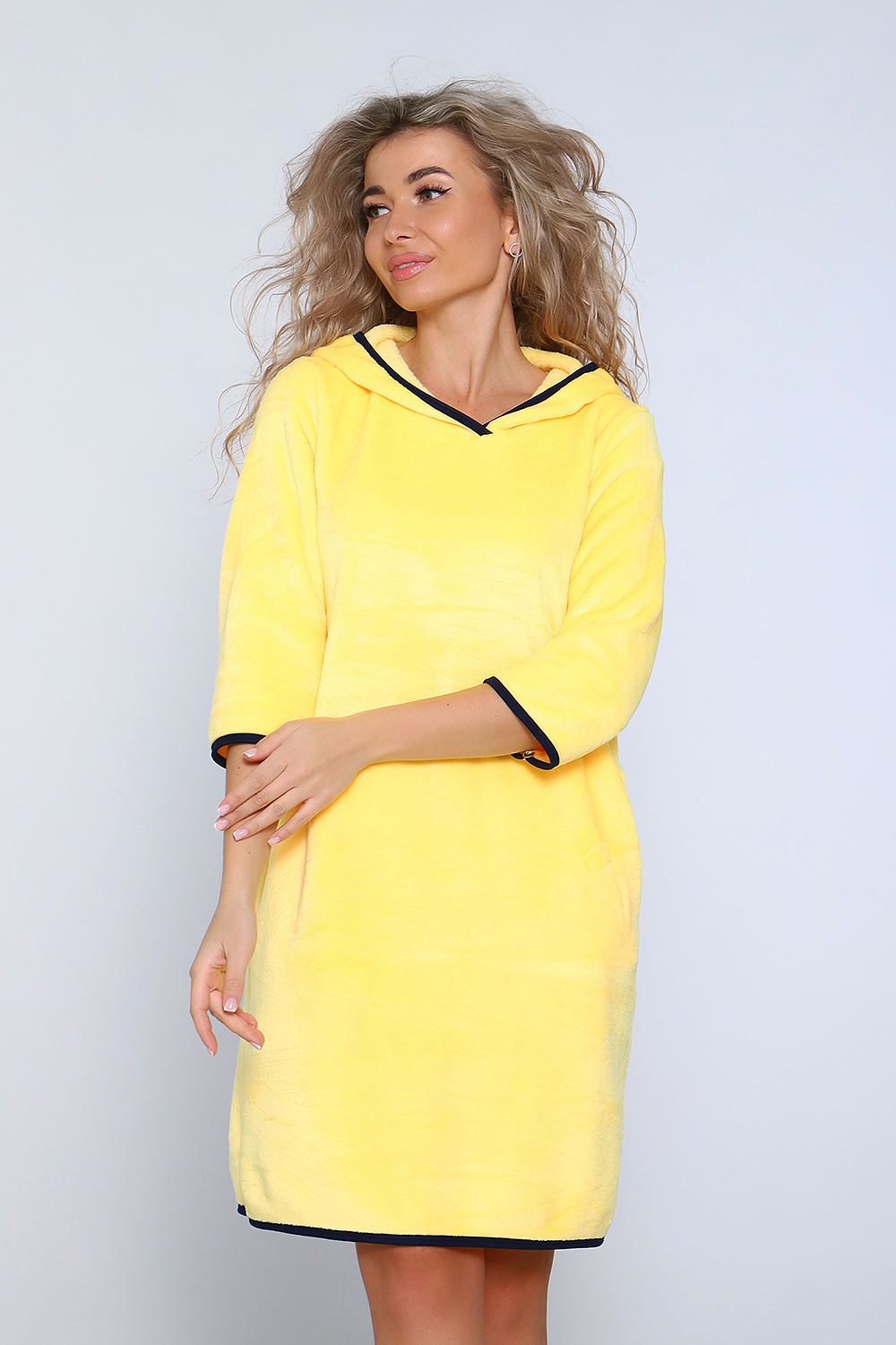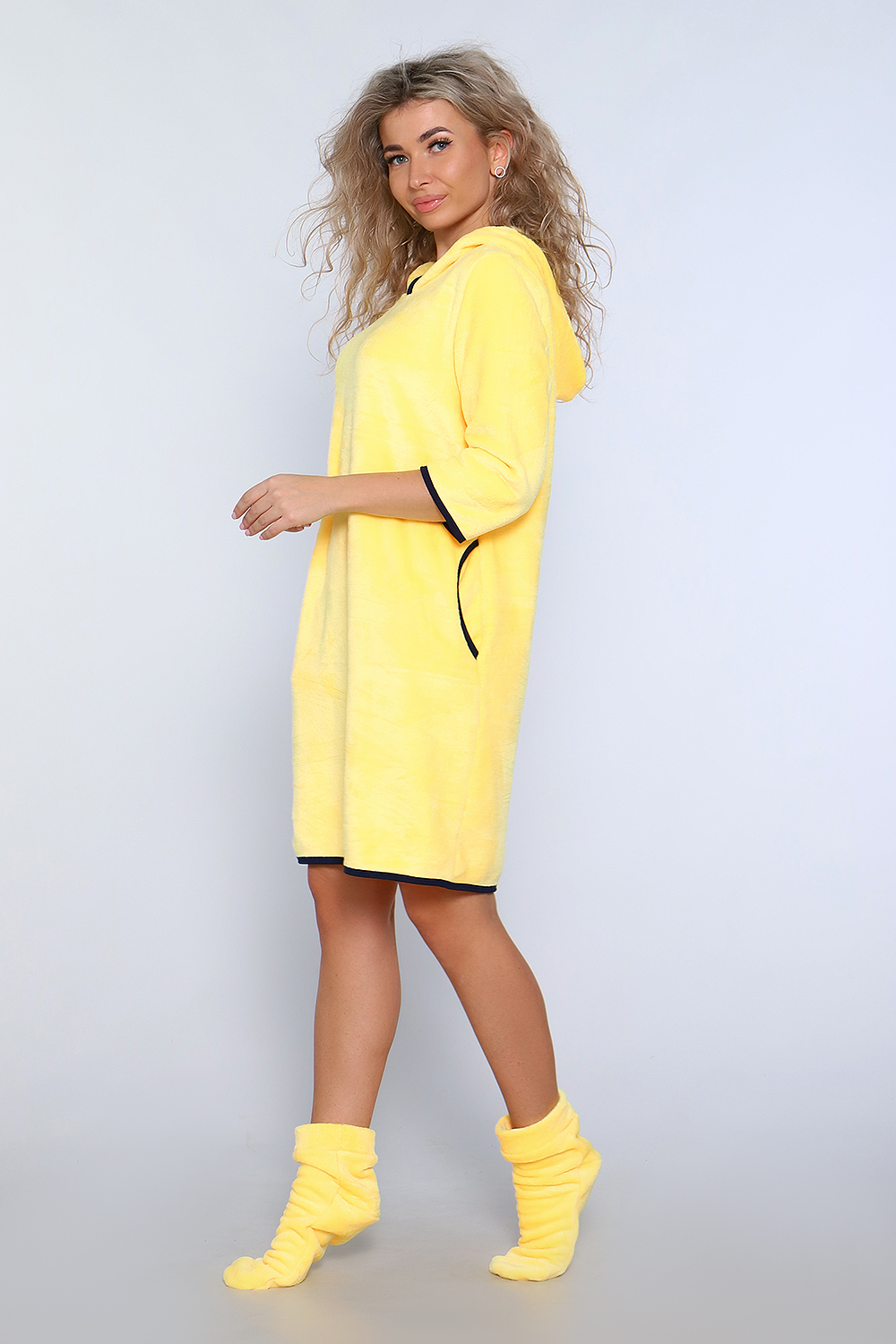 Туника женская из велсофта с капюшоном обработанный окантовкой, в боковых швах карманы, длина до колена. Туника очень приятная к телу, мягкая, легкая как пух. А для любимых покупателей мы сделали подарок, в пакетике положили носочки тоже такие же мягкие. Хороших Вам покупок и прекрасного настроения. Размеры у туник сдвоены 40-42,44-46,48-50,52-54.