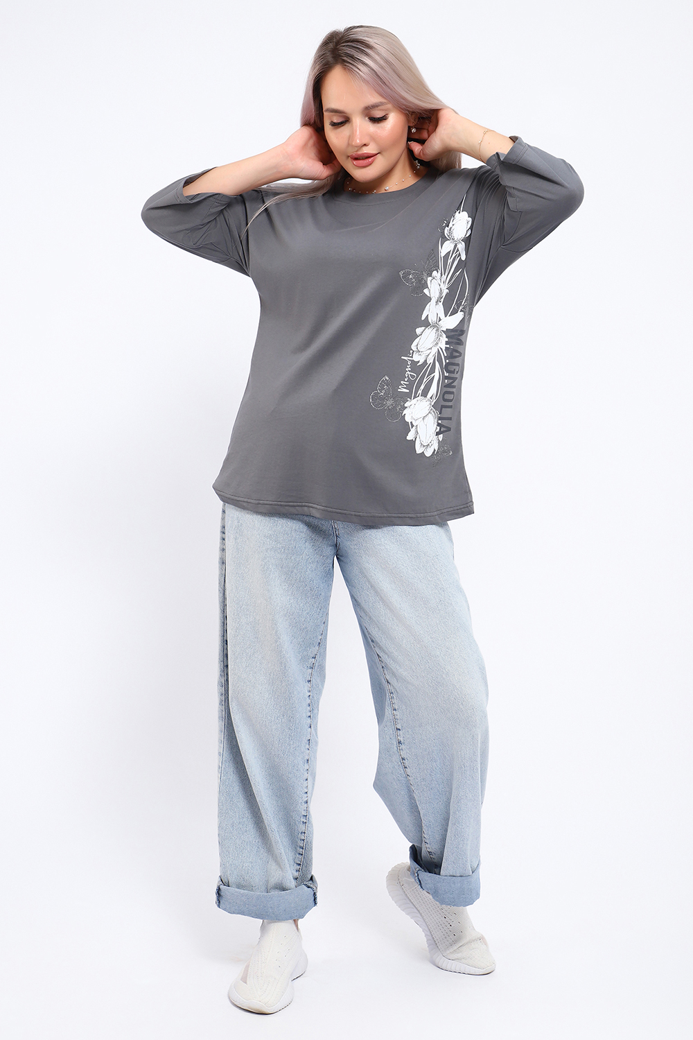 Туника свободного кроя из мягкого, натурального хлопка подарит ощущение комфорта и уюта. Принт маки с использованием глиттера и техники объёмной печати украшает модель, придавая ей изысканный вид. Обработка деталей вкруговую с закрепкой, рукав длиной 3/4, горловина втачная из основной ткани. Большие размеры!