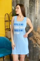 Туника полуприлегающего силуэта средней длины, с округлой горловиной, без рукавов, с удлиненной спинкой. В верхней части спинки расположена кокетка. В нижней части боковых швов обработаны разрезы. Горловина и проймы обработаны бейкой из основного полотна.
