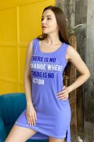 Туника полуприлегающего силуэта средней длины, с округлой горловиной, без рукавов, с удлиненной спинкой. В верхней части спинки расположена кокетка. В нижней части боковых швов обработаны разрезы. Горловина и проймы обработаны бейкой из основного полотна.