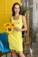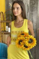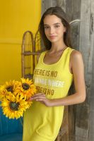 Туника полуприлегающего силуэта средней длины, с округлой горловиной, без рукавов, с удлиненной спинкой. В верхней части спинки расположена кокетка. В нижней части боковых швов обработаны разрезы. Горловина и проймы обработаны бейкой из основного полотна.