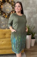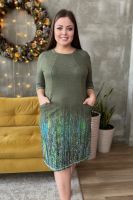 Туника полуприлегающего силуэта, средней длины, с округлой горловиной. Рукав реглан, длиной 3/4. Обработаны карманы в рельефах полочки. Горловина обработана обтачкой. На модели 52 размер