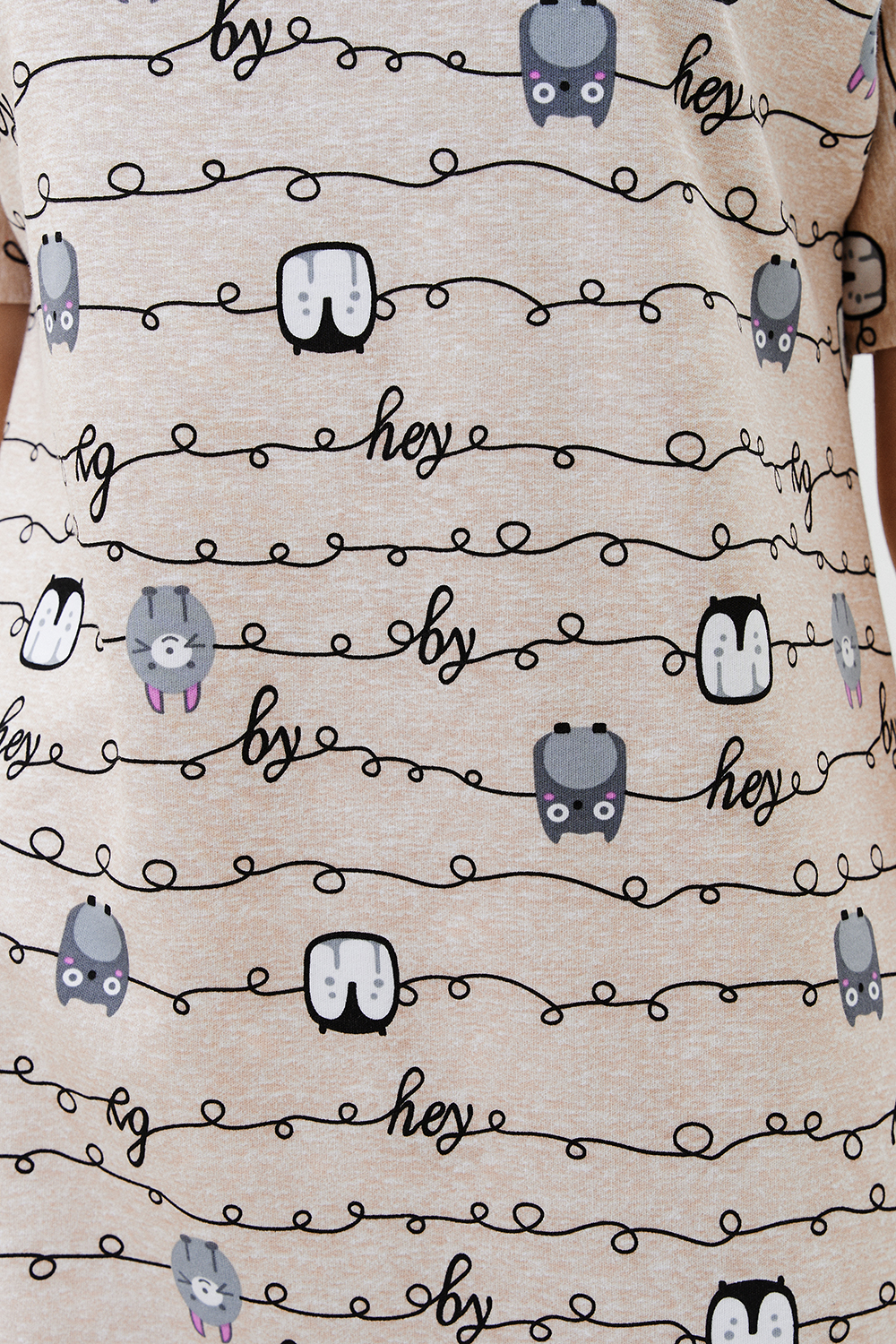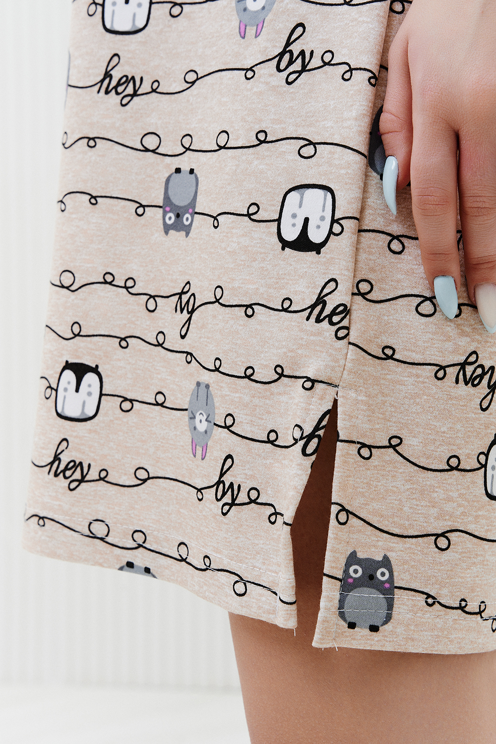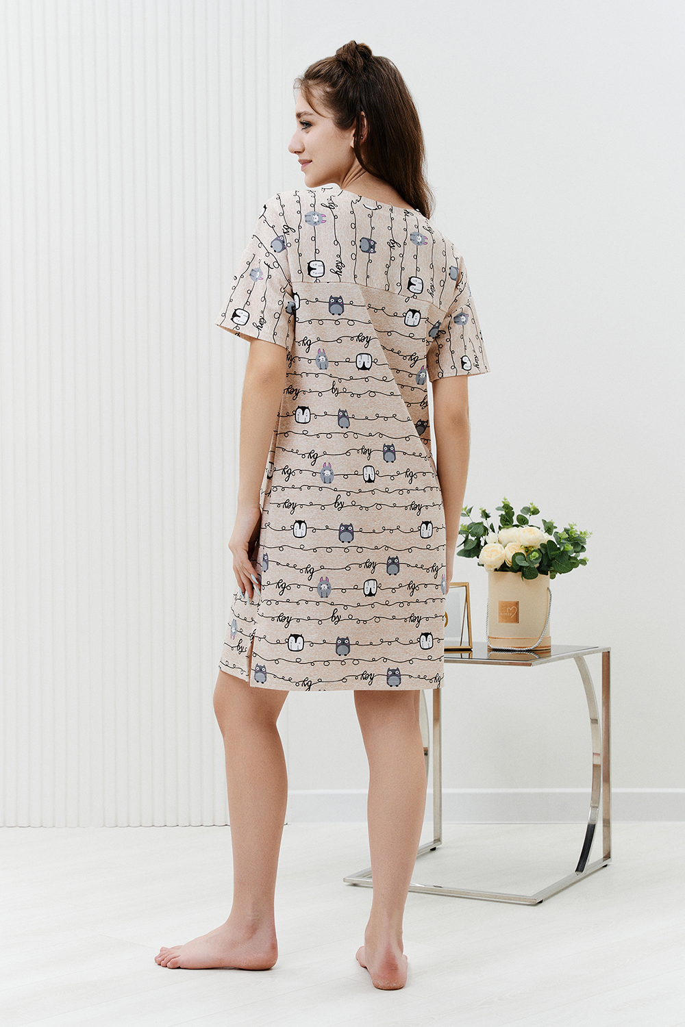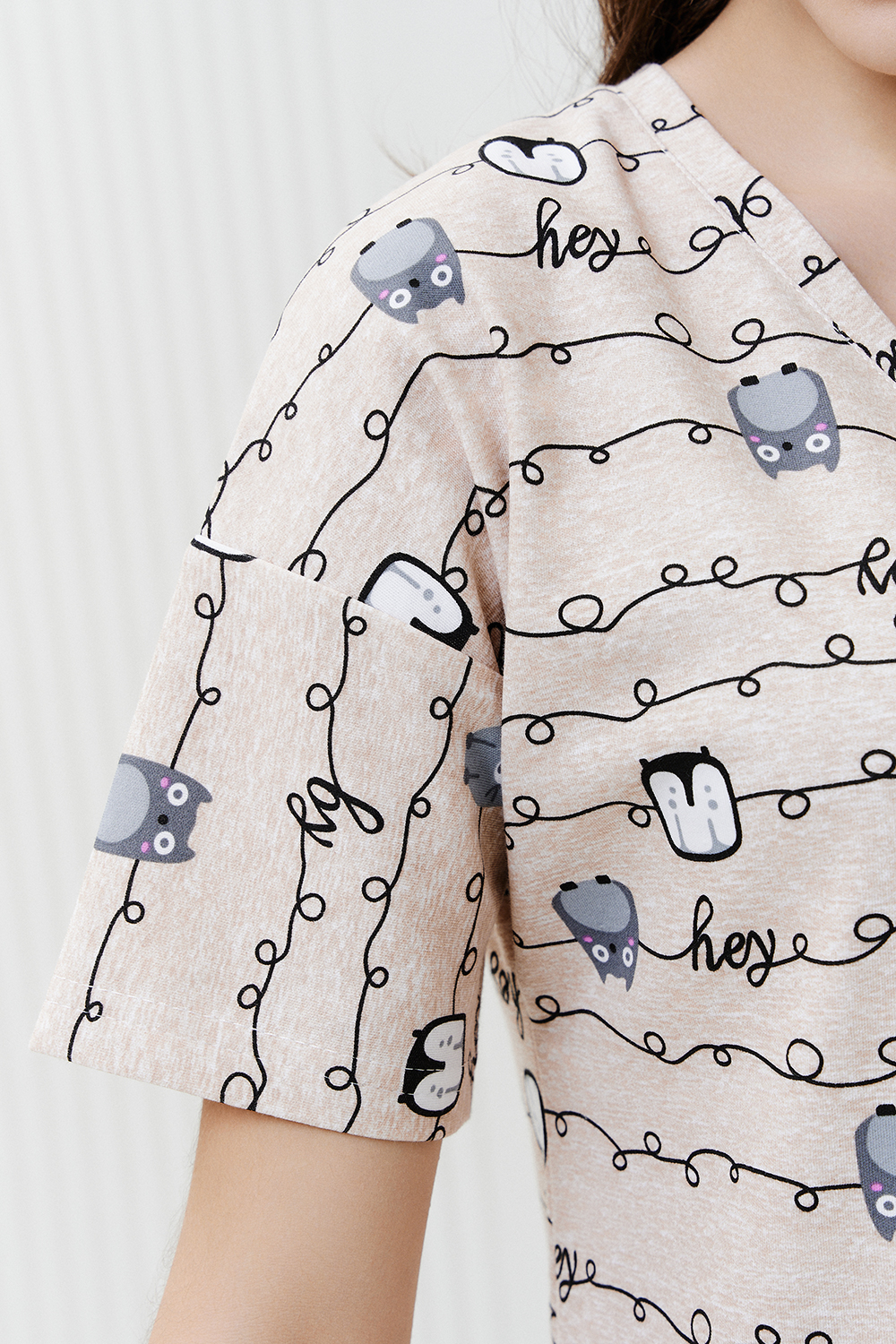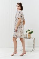 Туника прямого силуэта, с V-образной горловиной. Рукав короткий. Спинка с кокеткой. В нижней части боковых швов обработаны разрезы. Горловина обработана обтачкой из основного полотна.