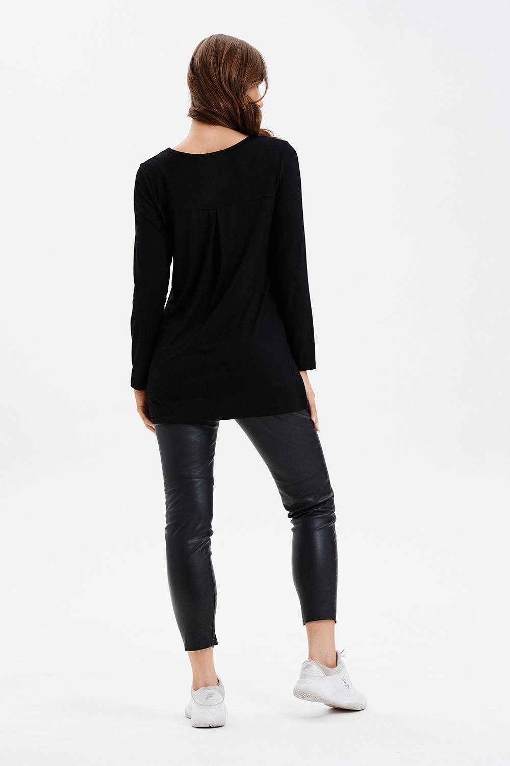 Туника прямого силуэта, с округлой горловиной, с разрезами в нижней части боковых швов. Спинка с кокеткой, удлиненная. Рукав втачной, длинный. Горловина обработана бейкой из основного полотна.