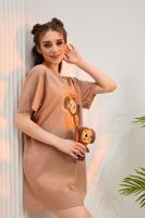 Туника-футболка в стиле "оверсайз". Прямая, свободная, длиной выше колена, с округлой горловиной. Рукав короткий. Горловина обработана обтачкой из основного полотна.