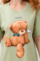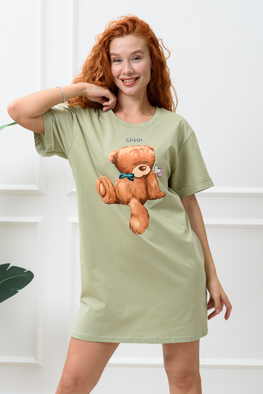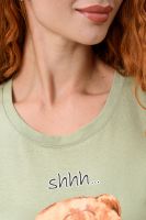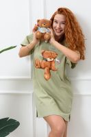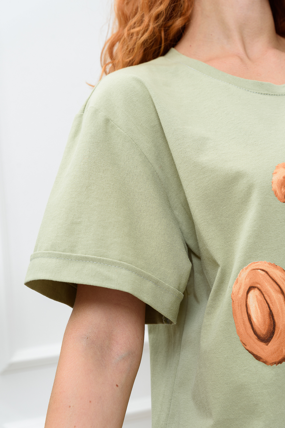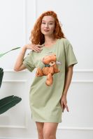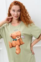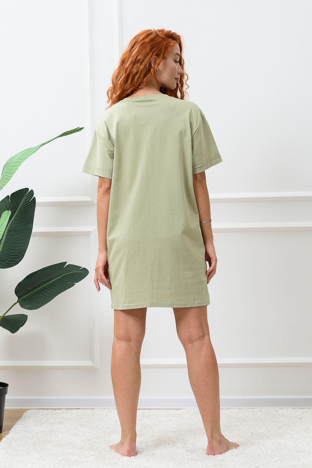 Туника-футболка в стиле "оверсайз". Прямая, свободная, длиной выше колена, с округлой горловиной. Рукав короткий, с манжетом. Горловина обработана обтачкой из основного полотна.