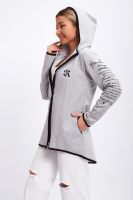 Туника необычного кроя на молнии, с капюшоном. Рукава длинные без манжетов, спинка длиннее переда. Карманы, рукава, капюшон и низ изделия обработан отделочной тканью. Принт на рукавах и полочке. Идеальное решение для прогулок, спорта или повседневного использования. Туника станет незаменимым элементом вашего гардероба.