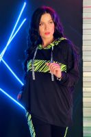 Туника женская прямого силуэта. Рукав цельнокроенный длинный со швом, на манжете. Капюшон и вставка на полочке из отделочной ткани.