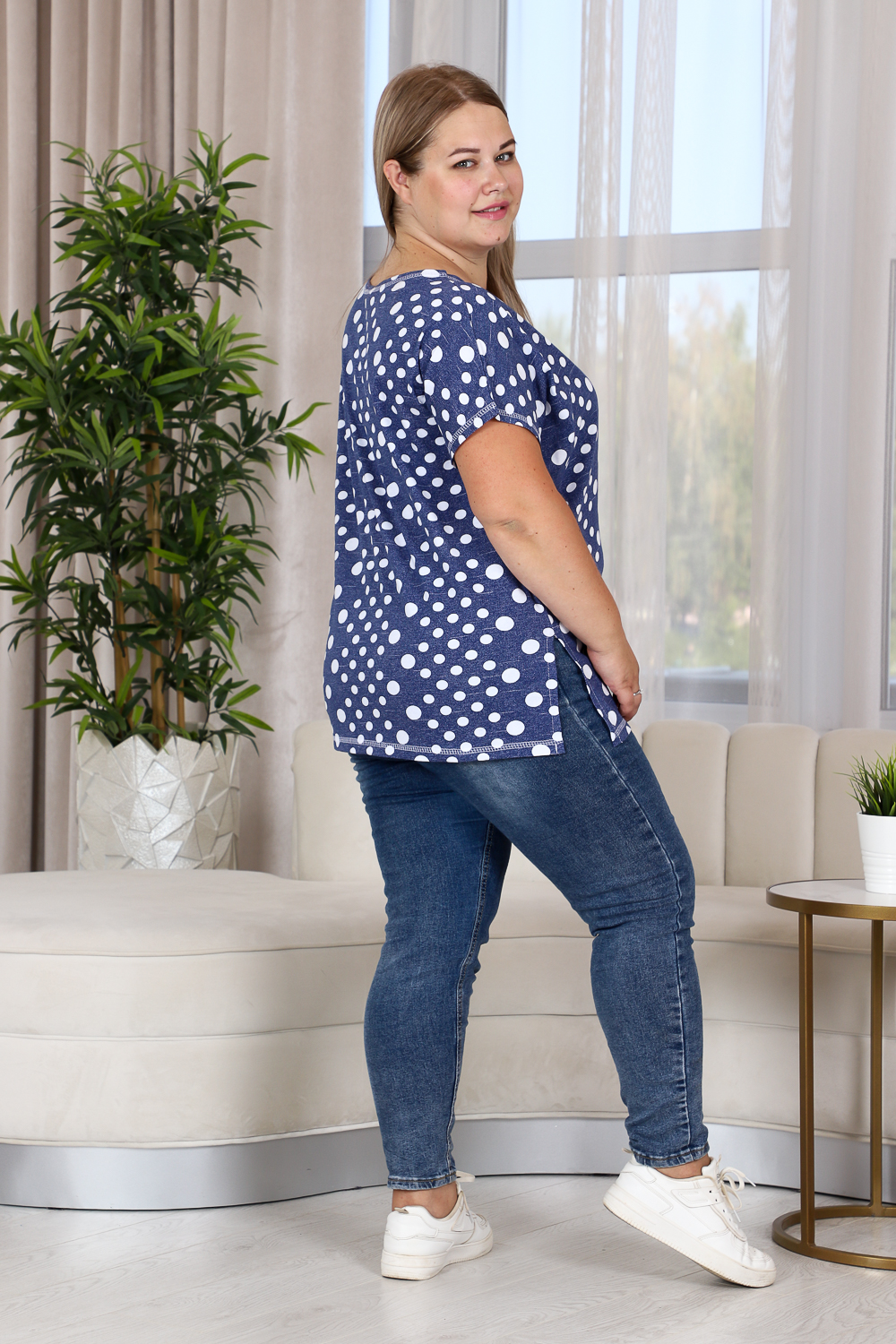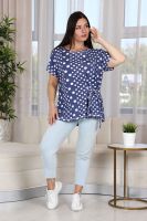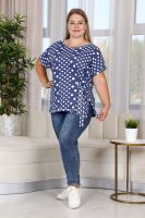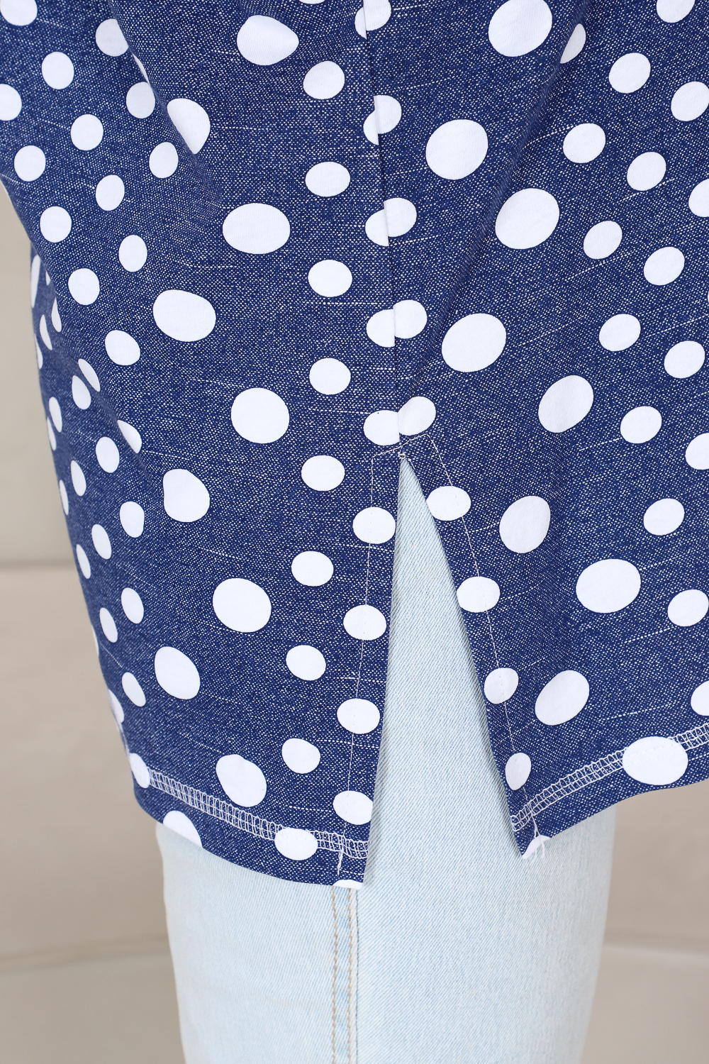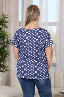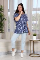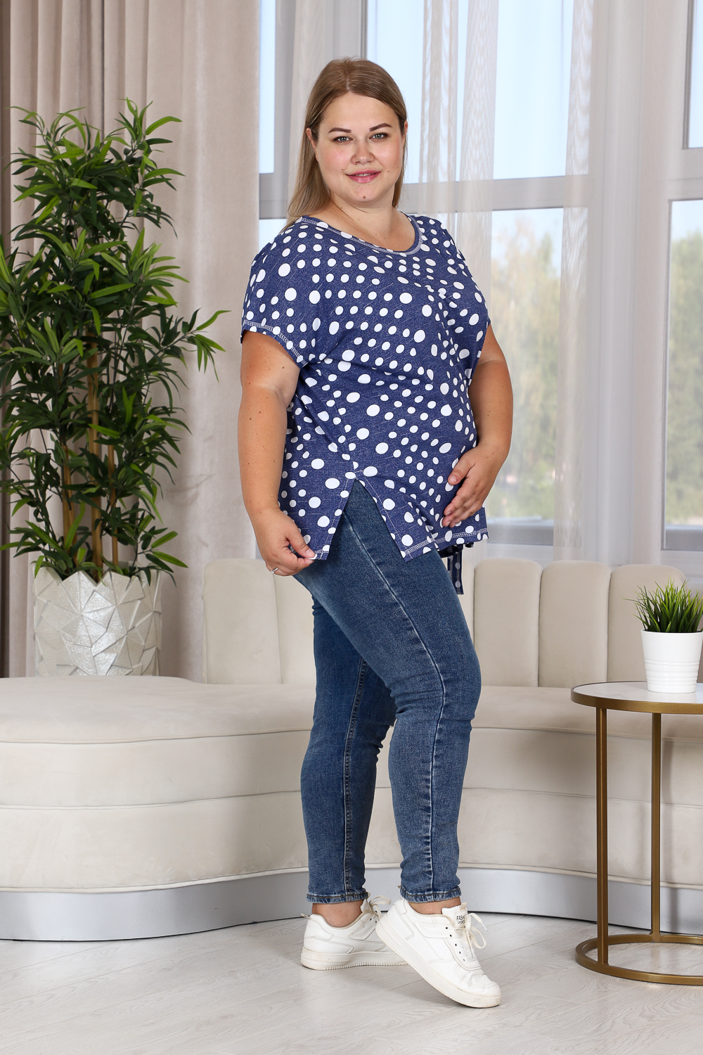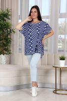 Туника женская, прямого силуэта. Рукав короткий цельнокроенный. Низ изделия регулируется двумя завязками, по боковым швам разрезы