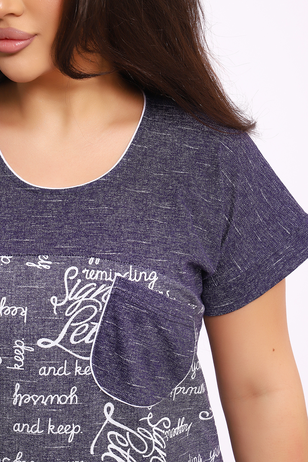 Женская туника со спущенной проймой, на кокетке выпущен кант. На полочке карман.