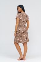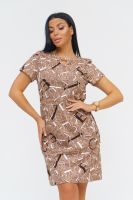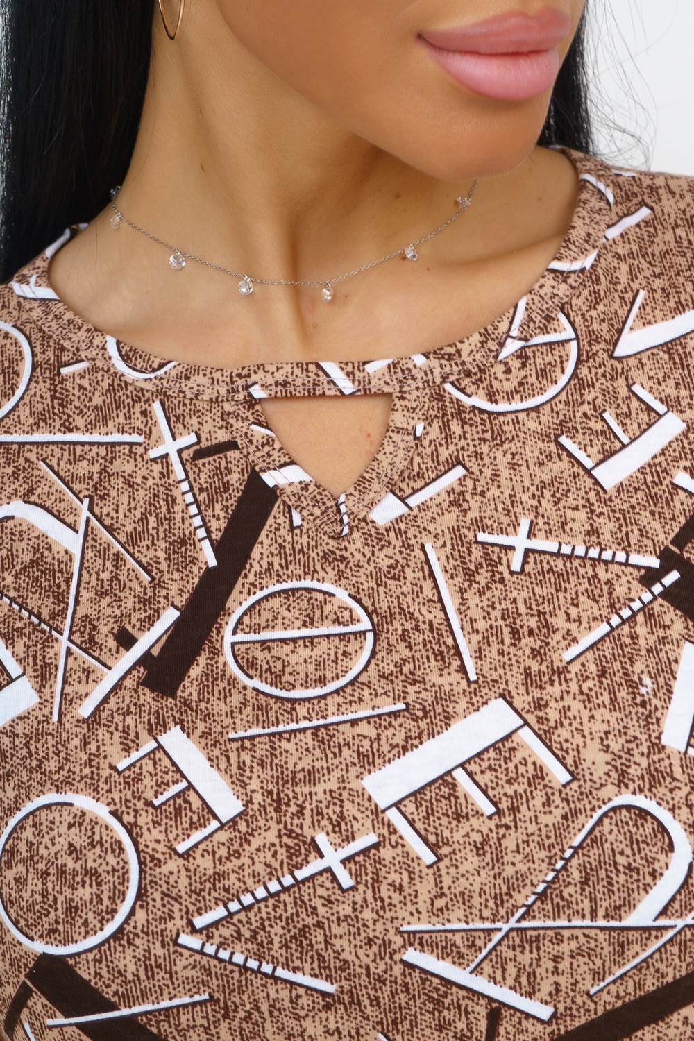 Туника женская прямого покроя. На горловине переда декоративный разрез. Вырез горловины в форме «лодочки». В боковом шве — карманы.