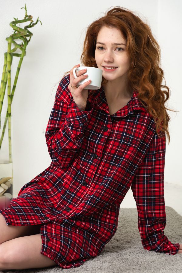 Туника выполнена из 100% хлопка. Такая мягкая и удобная, что её не захочется снимать. Изделие прямого силуэта, на пуговицах, отложной воротник. Рукава удлинённые, с широкими манжетами, выполненными "по косой". (Пожалуйста, обращайте внимание на фотографии деталей.) По низу изделия фигурный элегантный разрезик. Модная в этом сезоне клетка в сочетании с актуальными цветами не оставит Вас без внимания, а свободный крой позволит чувствовать себя уверенно. Модель универсальная, подходит как для сна, так и для комфортного времяпровождения дома. Длина рукава в характеристиках указана от точки основания шеи.