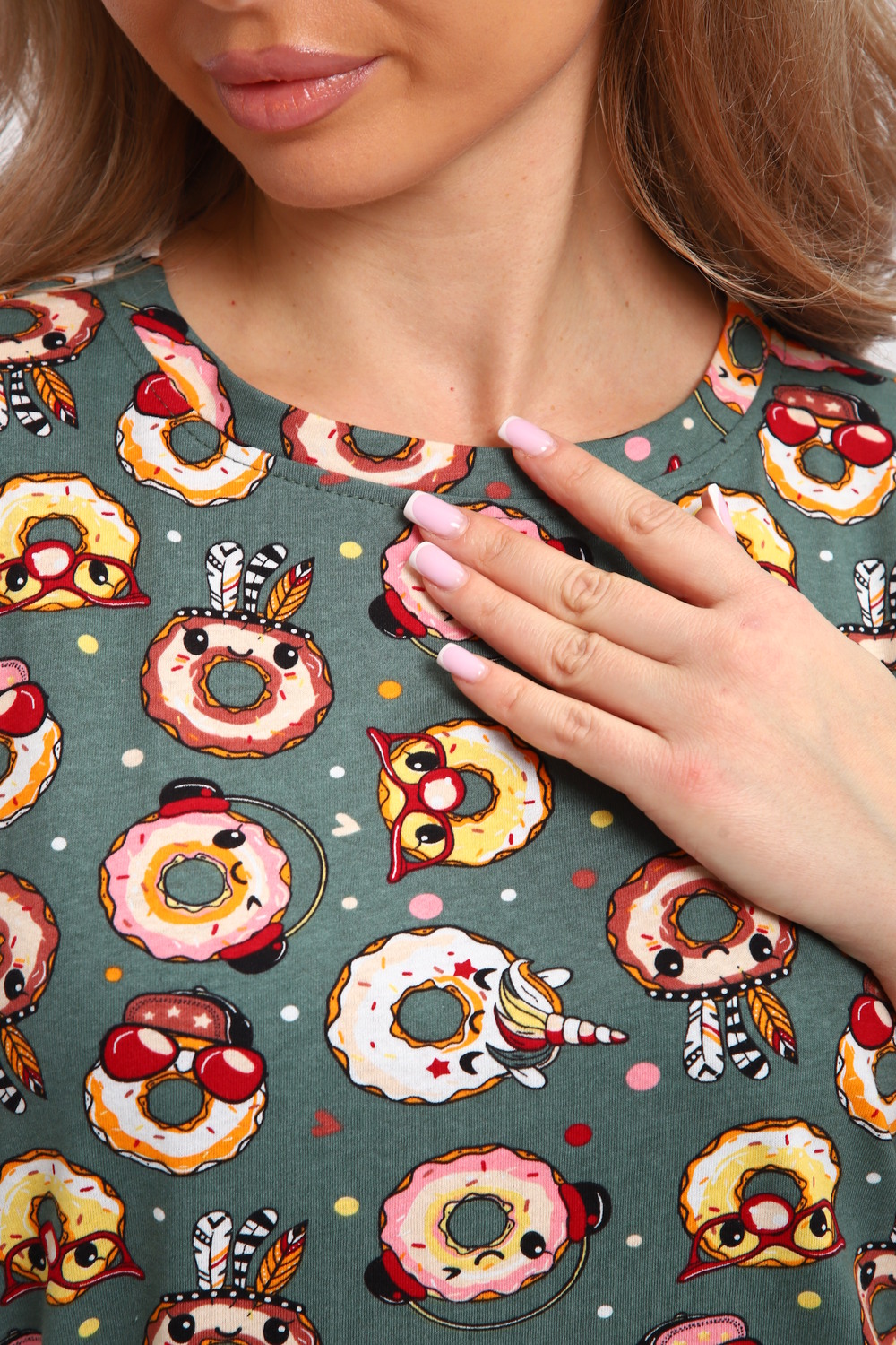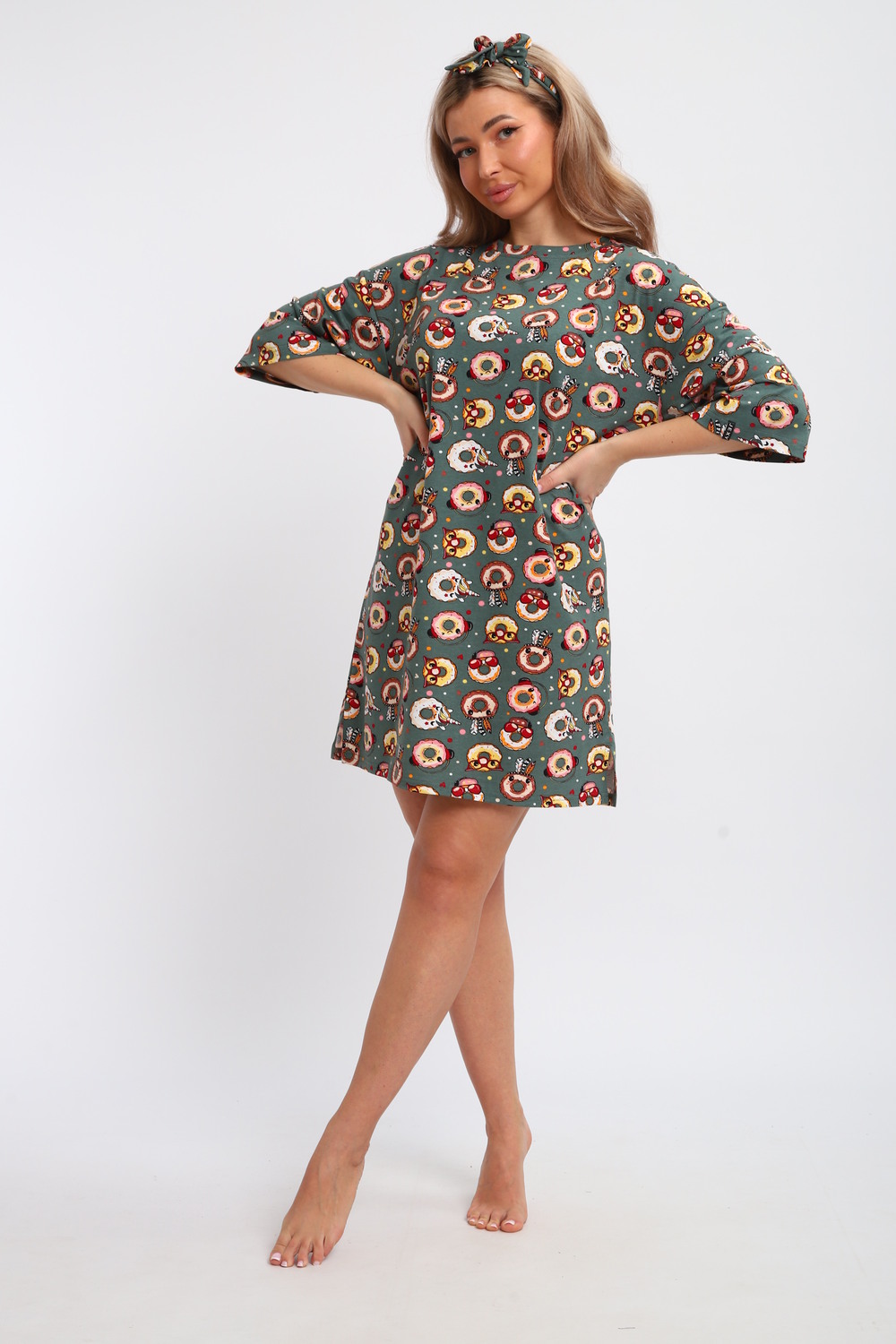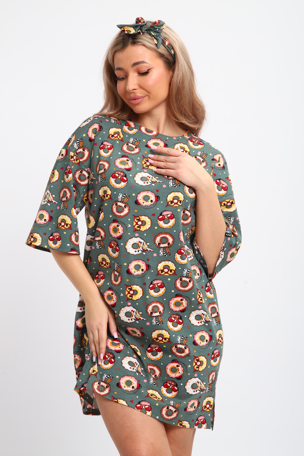 Эта нежная новогодняя туника с бантиком в подарок от JEXY создана специально для женщин, которые ценят комфорт и стиль. Эта легкая молодежная туника-футболка изготовлена из мягкого трикотажа (кулирка, хлопок 100%), обеспечивая ощущение естественной свежести на протяжении всего дня. Женское платье больших размеров — это идеальный выбор для женщин, девушек или подростков, которые хотят выглядеть модно и стильно без усилий. Благодаря свободному покрою в стиле оверсайз и удлиненным рукавами, она придаст вашему образу непринужденность и легкость. Это классическое трикотажное платье миди подойдет как для дома, так и для отдыха на пляже. Женское платье-футболка особенно подходит для беременных женщин, так как его свободный крой и мягкий материал обеспечивают максимальный комфорт во время всего периода беременности. А для кормящих мамочек эта ночная сорочка станет незаменимой благодаря функциональному дизайну, который позволяет легко и удобно кормить ребенка. Красочная принт с пончиками, придающая особый шарм этой подростковой домашней тунике, добавит игривости и новогоднего настроения вашему образу. Она подчеркнет вашу индивидуальность и создаст стильный и модный образ на Новый Год и Рождество. Представленная туника - это настоящая находка для ценителей легкости и свободы. Её стильная элегантность и универсальность делают её отличным выбором для любого случая, будь то домашний отдых или тематическая встреча. Повышайте свою модную состоятельность и ощутите преимущества стильного образа с этой женской туникой с принтом от JEXY!