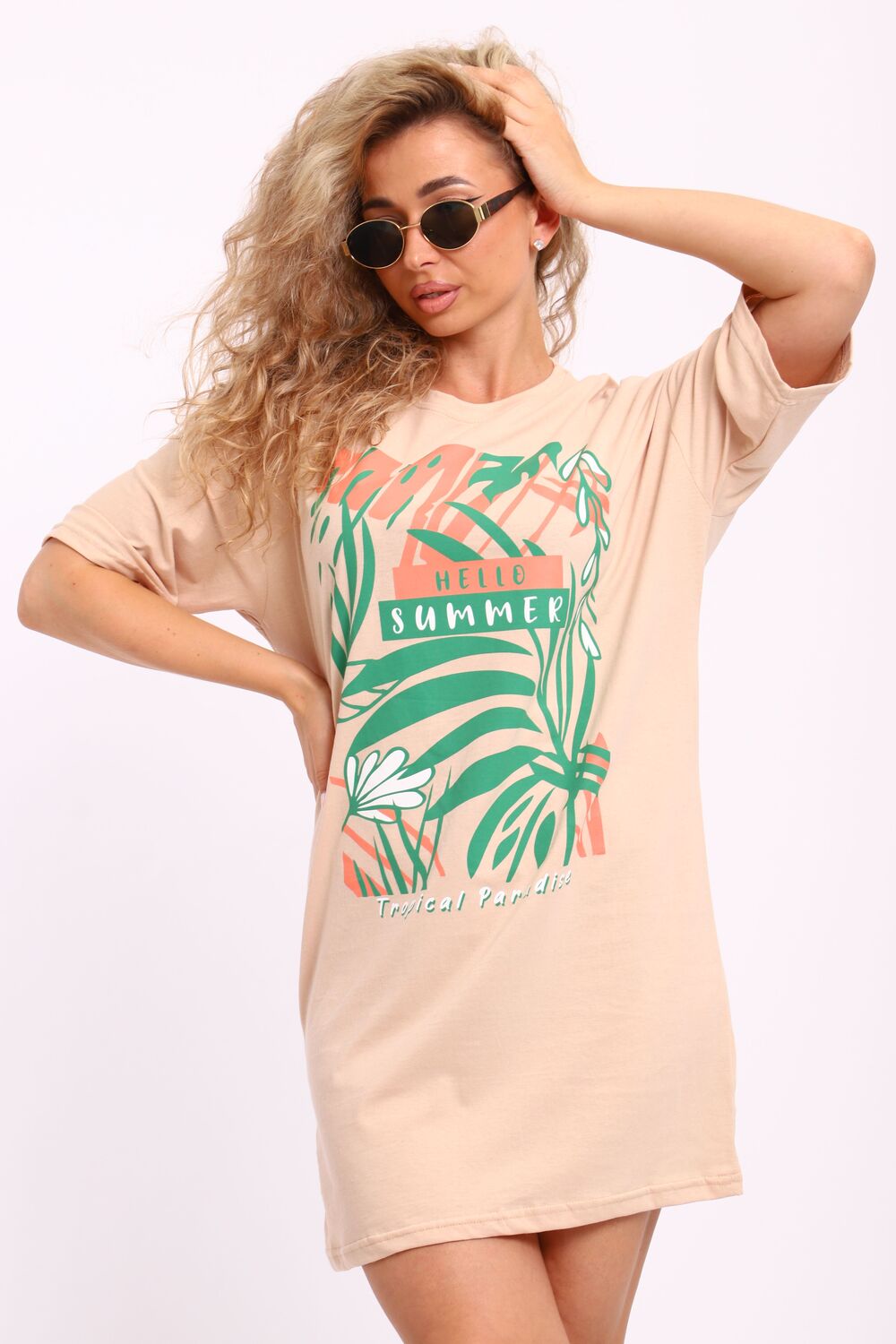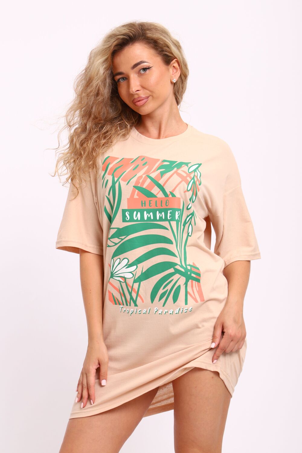 Туника женская горловина обтачка, с коротким рукавом и печатью на передней полочке.