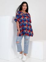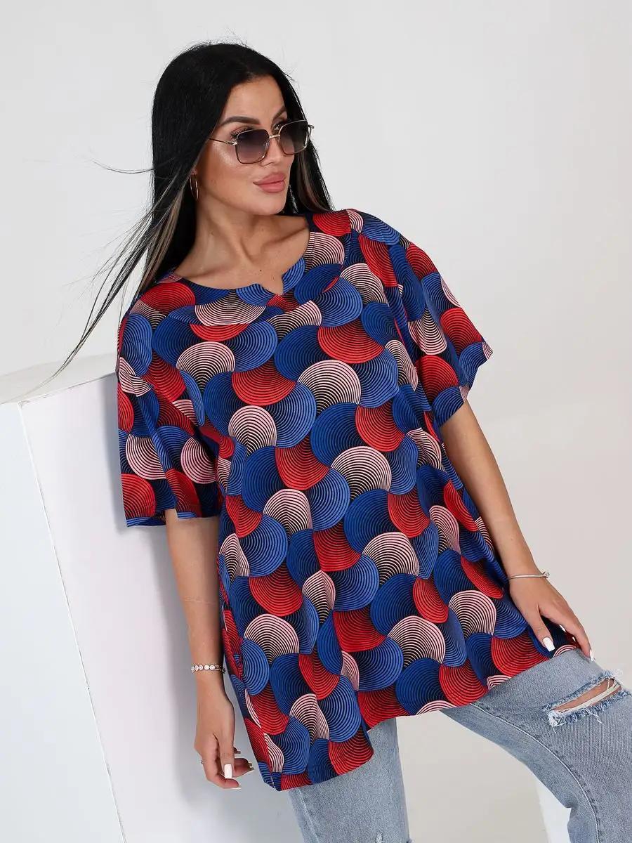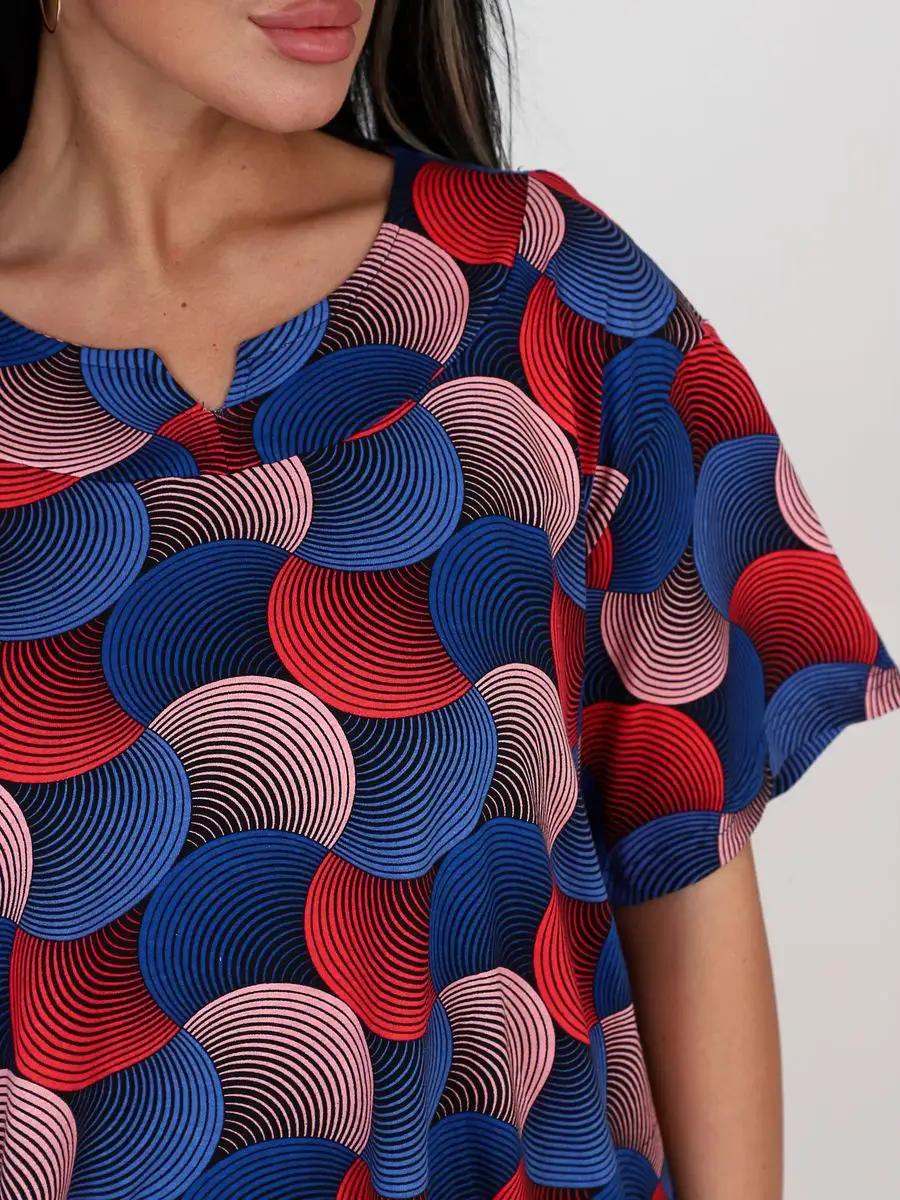 Туника удлинённая с коротким рукавом. Туника будет хорошо смотреться на разных типах женской фигуры и подойдет для женщин всех возрастов. Изделие выполнено из 100% хлопка, благодаря чему модель абсолютно комфортна в носке, мягкая и приятна к телу, что прекрасно подойдет для дома, дачи и отдыха.