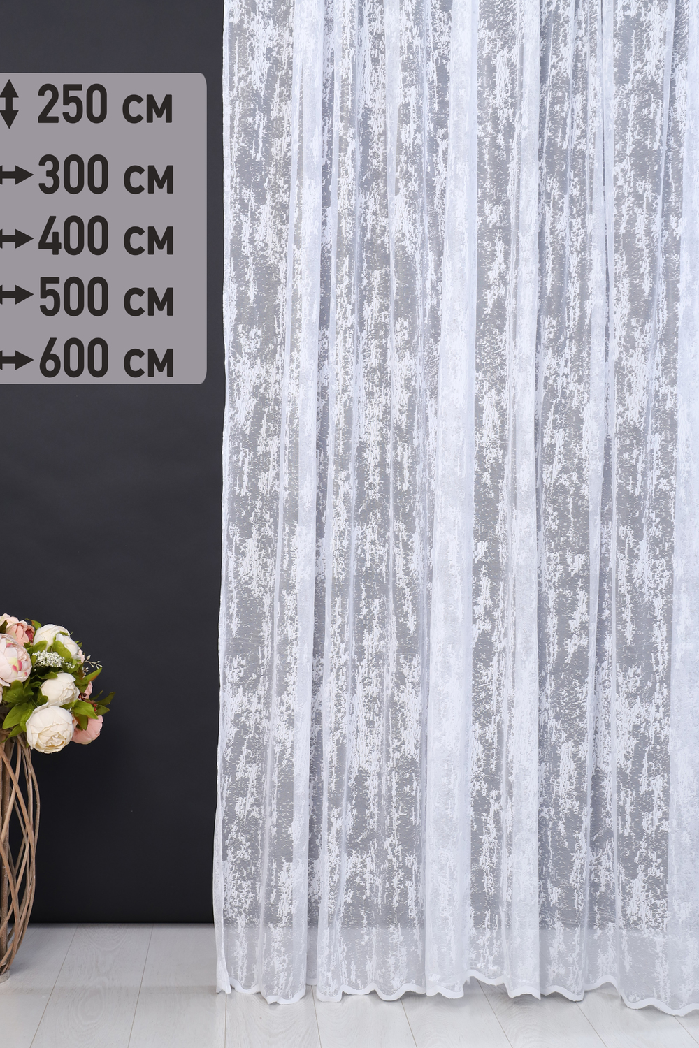 Тюль-сетка жаккардовая Мрамор, ширина 300, 400, 500 и 600 см, высота 250 см представляет собой тонкую полупрозрачную сетку с мягким плотным рисунком в виде мазков, напоминающих мрамор и мягким матовым блеском. Низ тюля фигурный край в виде волны. Тюль пошит одним полотном, на широкой равномерной ленте 4 см, с 2 рядами кармашков, что позволяет регулировать высоту. Тесьма с петлями и затяжками, предназначена как для крепления на карниз с крючками, так и на гардину трубу штангу. Штора хорошо дополнит ваш интерьер, подходит для кухни, гостиной, детской комнаты, спальни и балкона. Отгораживает дом от посторонних глаз, пропуская и рассеивая солнечный свет. Ткань для тюля производство Турция. Легко стирать в стиральной машинке, можно без сушки, достаточно после стирки повесить на карниз, складки расправятся под тяжестью изделия или разгладить отпаривателем. Цвет может незначительно отличаться от представленного на фото ввиду индивидуальных особенностей настроек мониторов.