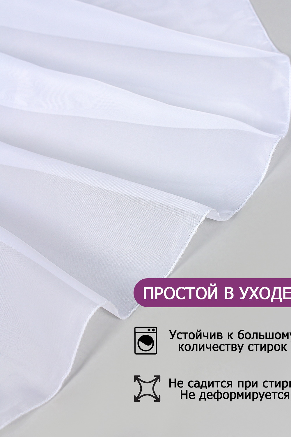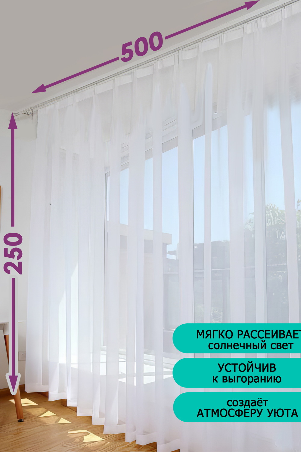Красивая интерьерная тюль белая на шторной ленте разных размеров: 500*240, 500*250, 500*260 это универсальный способ оформления для веранды, беседки для дачи или на большое окно в зал. Прозрачная однотонная тюль из ткани вуаль могут фильтровать солнечный свет и балансировать уровень освещенности для дома. Плотность ткани 60 гр/м3. Легкие занавески тюль 5 метров можно повесить отдельно в комнату или столовую для простоты, но также их можно сочетать с плотными шторами для стильного и яркого внешнего вида. Шторная лента кулиска в 4 см собирает полотно ткани в равномерные красивые складки.
