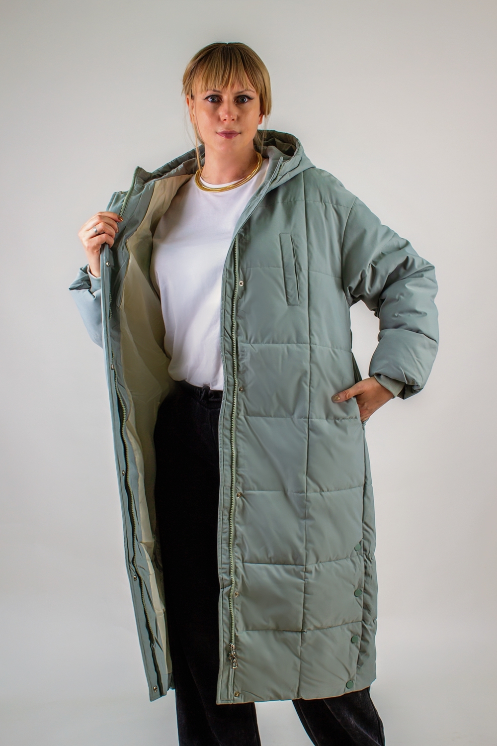 Удлиненная куртка с капюшоном, арт. 626, Демисезонная, Евро-зима – ваш универсальный выбор для прохладного межсезонья или теплой зимы. Модель разработана с учётом самых взыскательных требований к комфорту, свободе движений и функциональности, не теряя при этом стильного облика. Дизайн и крой – Длина ниже колен дает тепло ногам и придаёт образу элегантность, подчёркивает стройность фигуры. – Капюшон с воротником-стойкой надёжно защищает от ветра и мороси – Двойная застёжка: позволяет оперативно регулировать степень открытости куртки: внизу — для удобства при ходьбе и посадке в автомобиль, вверху — для плотного прилегания горловины. Специальная планка на кнопках надёжно защищает от продувания по линии застёжки. Утеплитель и стёжка – Классическая квадратная стёжка (не ультрастеп) не только эффектно смотрится, но и обеспечивает равномерное распределение утеплителя по всей поверхности изделия. – Продуманная плотность наполнителя сохраняет тепло внутри, не создавая ощущения «снеговика» – куртка остаётся лёгкой, не стесняет движений и «дышит». Функциональные детали – Два боковых кармана на скрытой молнии – идеальны для смартфона, перчаток или ключей. – Один нагрудный карман на кнопке позволит скрытно хранить документы или кошелёк. – Рукава с эластичными манжетами защищают от холода, не допуская попадания снега и ветра. – По бокам внизу куртка снабжена растёжкой на кнопках до 35 см – при необходимости вы создадите дополнительный простор для движения, сидя за рулём или на активном отдыхе. Материал и уход – Внешний материал с матовым «пыльным бирюзовым» эффектом — необычный, но при этом очень универсальный оттенок, подходящий как к городскому casual, так и к спокойному спортивному стилю. – Водо- и грязеотталкивающая пропитка сохраняет первоначальный вид даже после многократной носки. – Удобный уход: машинная стирка при низкой температуре. Для кого? Эта куртка станет надёжным спутником как в будничных городских маршрутах, так и в загородных прогулках и зимних вылазках на дачу. Она сочетает в себе универсальность, практичность, комфорт и лаконичный европейский стиль. Преимущества модели арт. 626: 1. Крой со слегка расширенным объёмом внизу для свободы движений. 2. Комплексная защита от ветра, холодного воздуха. 3. Продуманные карманы и внутренние детали для хранения всего необходимого. 4. Эластичные манжеты и ветрозащитная планка – дополнительный барьер холоду. 5. Стёжка и наполнитель, сохраняющие тепло без лишней громоздкости. Обновите свой демисезонный гардероб стильной курткой, сочетающей в себе актуальность и функциональность.