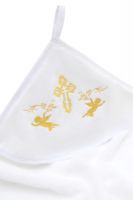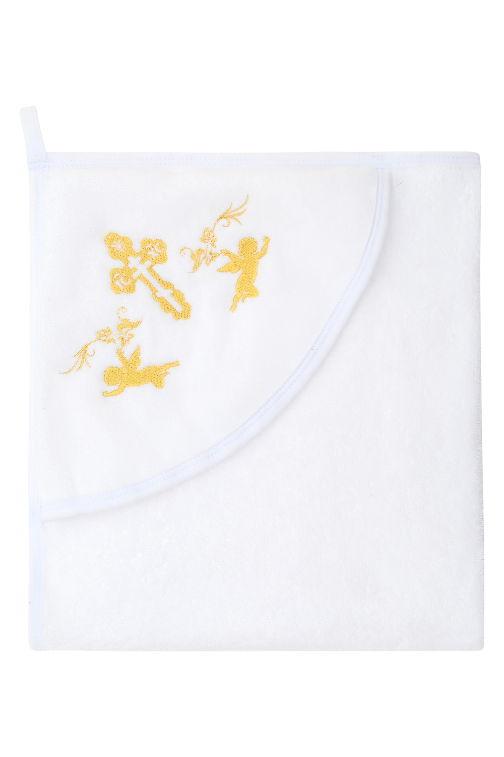 Детское крестильное полотенце с уголком махровое белое изготовлено из мягкого 100% хлопка, который подходит для новорожденных, не вызывает аллергии и отлично впитывает влагу. С лицевой стороны уголка - нежный хлопковый велюр (короткостриженая натуральная махра), с изнанки - мягкая петельчатая махра. Благодаря такой отделке уменьшается риск образования затяжек, а само полотенце выглядит дорого и благородно. Полотенце с капюшоном большого размера 90х100 см для детей с рождения до 5-6 лет позволяет укутать малыша полностью с макушки до пяточек. Удобный капюшон с вышивкой золотой нитью (православная тематика, ангелы) поможет быстро высушить волосы. Этот банный аксессуар с оригинальным дизайном, как мягкое махровое облачко, понравится всем членам семьи без исключения! Полотенце быстро впитывает влагу и подойдет для ванной. Махровая ткань отлично пропускает воздух, позволяя коже "дышать". Полотенце для мальчика и девочки подходит всем, кто подбирает товары для новорожденных, памятный подарок молодой будущей маме, на рождение ребенка, на годик, выписку из роддома, крестины малыша, внуку, внучке. Это банное махровое полотенце для новорожденного с уголком в идеальном исполнении: натуральное, функциональное и очень красивое!