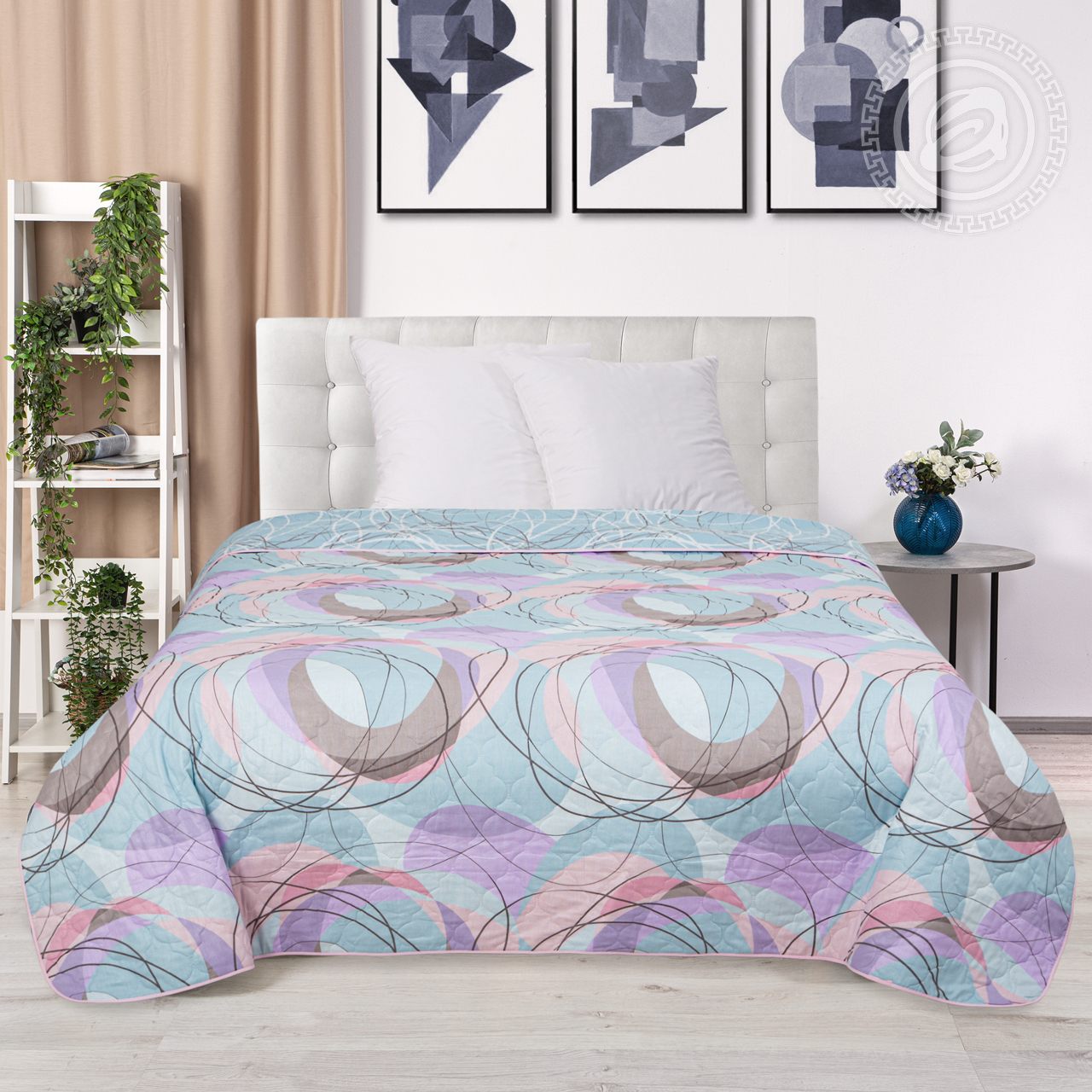 Покрывало защищает постельное белье от загрязнений, а также выполняет декоративную функцию, меняя облик комнаты в лучшую сторону. Снаружи изделия выполнены из материала, в основе которого лежит 100% хлопок. Натуральное волокно не вызывает аллергии и абсолютно безопасно для здоровья. К главным достоинствам бязи относят также высокую воздухопроницаемость и износостойкость. В качестве наполнителя используется полиэфирное волокно. Оно отличается легкостью и высокими теплоизоляционными характеристиками и хорошо сохраняет форму. Покрывало с модной абстракцией олицетворяет нежность и элегантность. Изящный принт с причудливыми завитками и в пастельной палитре по своей красоте соотносится с плавной мелодией вальса, которая дарит ощущение легкости и мечтательности. «Вальс» — это изысканный минимализм для облика спальни.