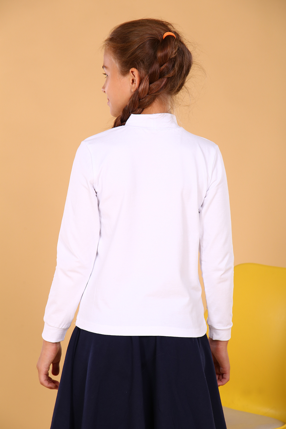 Школьная водолазка из высококачественного трикотажного полотна на хлопковой основе с добавлением эластана. Длинный рукав. Нарядность и романтичность изделию придает принт в виде цветов. Прекрасно будет смотреться в качестве школьной формы, как альтернатива классической блузке. Удобна в качестве повседневной одежды. Хорошо сохраняет цвет и форму при активной носке и после многократных стирок при 30 градусах. Синяя юбка на фото артикул 11594.