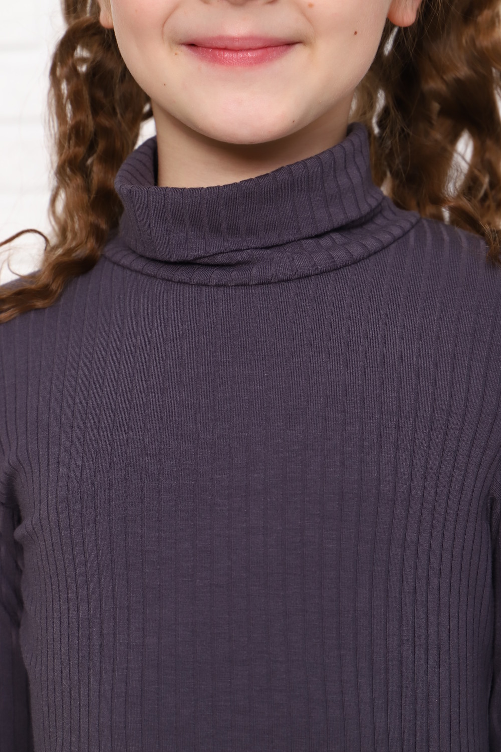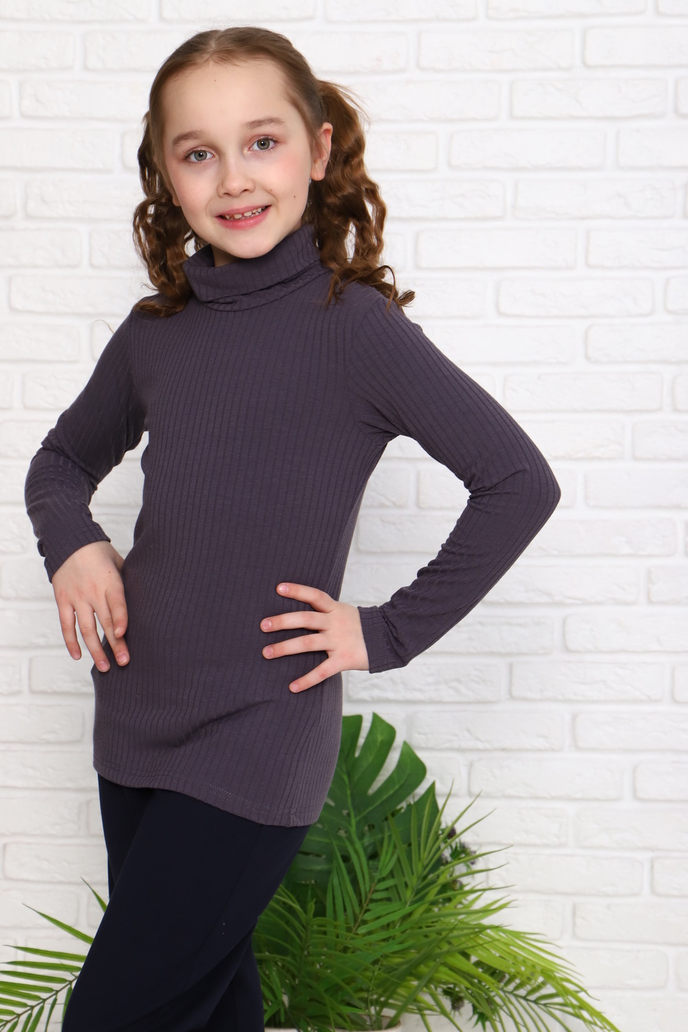 Водолазка для девочек младшего и старшего школьного возраста, из однотонного трикотажного полотна - лапша. Водолазка приталенного силуэта, с втачным рукавом, с воротником – стойка - отворот. Спереди и на спинке отсутствуют линии членения. Рукав длинный. Низа рукавов и изделия подогнуты.