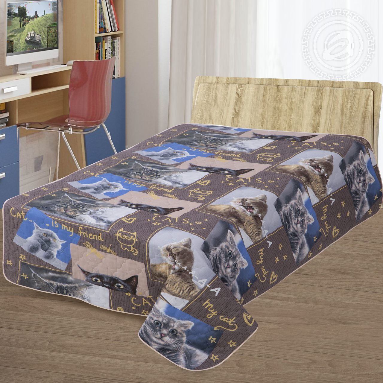 Покрывало защищает постельное белье от загрязнений, а также выполняет декоративную функцию, меняя облик комнаты в лучшую сторону. Снаружи изделия выполнены из материала, в основе которого лежит 100% хлопок. Натуральное волокно не вызывает аллергии и абсолютно безопасно для здоровья. К главным достоинствам бязи относят также высокую воздухопроницаемость и износостойкость. В качестве наполнителя используется полиэфирное волокно. Оно отличается легкостью и высокими теплоизоляционными характеристиками и хорошо сохраняет форму. «Замурчательная жизнь» - покрывало с веселым и очаровательным принтом. Главными звездами забавного дизайна стали котики, которые артистичны и очень милы. Домашние питомцы выражают спектр эмоций от радости до удивления и особенно понравятся тем, у кого дома живут пушистые любимцы.