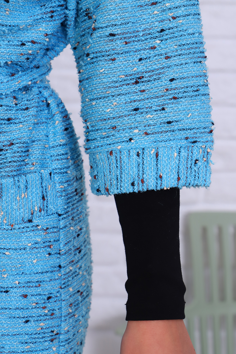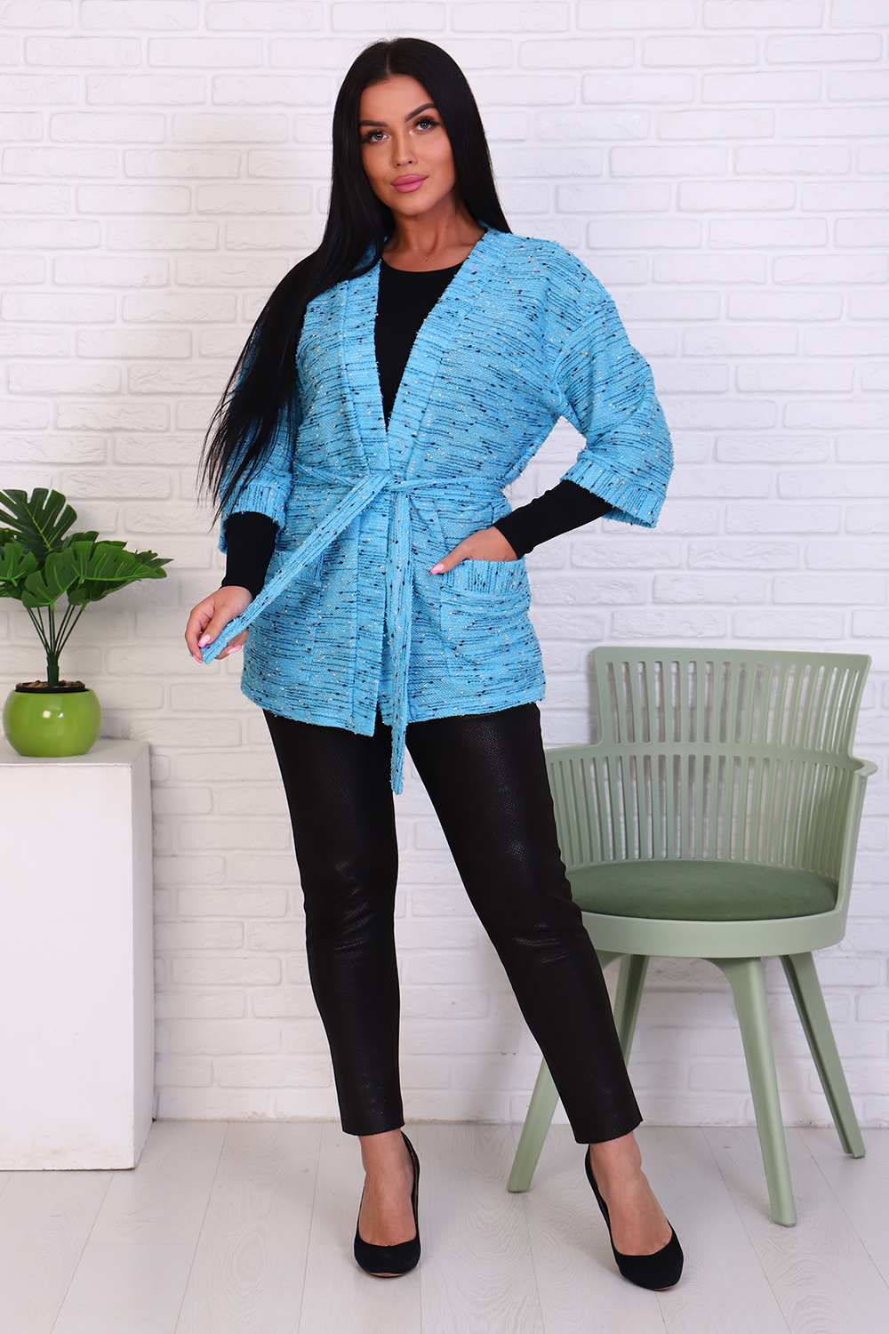 Стильный жакет из мягкого трикотажа БУКЛЕ с цветными вкраплениями. Модель свободного кроя с глубоким вырезом, передние полочки, накладные карманы и рукав гармонично оформлены широкой планкой, его можно носить как с поясом? так и без него. Жакет - это незаменимая вещь в гардеробе каждой современной девушки. Его простой крой, необычный, универсальный дизайн и удобный фасон не обойдут ни одну модницу стороной. Трикотаж БУКЛЕ приятный к телу, не колется.