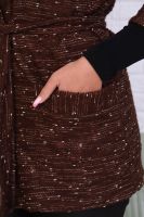 Стильный жакет из мягкого трикотажа БУКЛЕ с цветными вкраплениями. Модель свободного кроя с глубоким вырезом, передние полочки, накладные карманы и рукав гармонично оформлены широкой планкой, его можно носить как с поясом? так и без него. Жакет - это незаменимая вещь в гардеробе каждой современной девушки. Его простой крой, необычный, универсальный дизайн и удобный фасон не обойдут ни одну модницу стороной. Трикотаж БУКЛЕ приятный к телу, не колется.