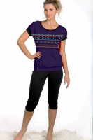 Женская пижама с бриджами и футболкой с коротким рукавом - идеальный баланс стиля и уюта. Модель выполнена из высококачественного кулирного волокна. Комфортный фасон и аккуратный дизайн