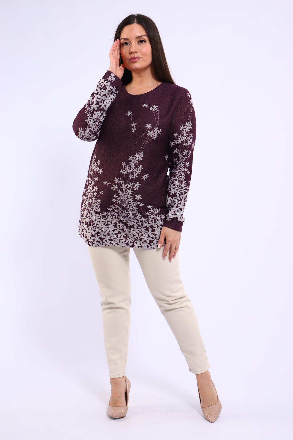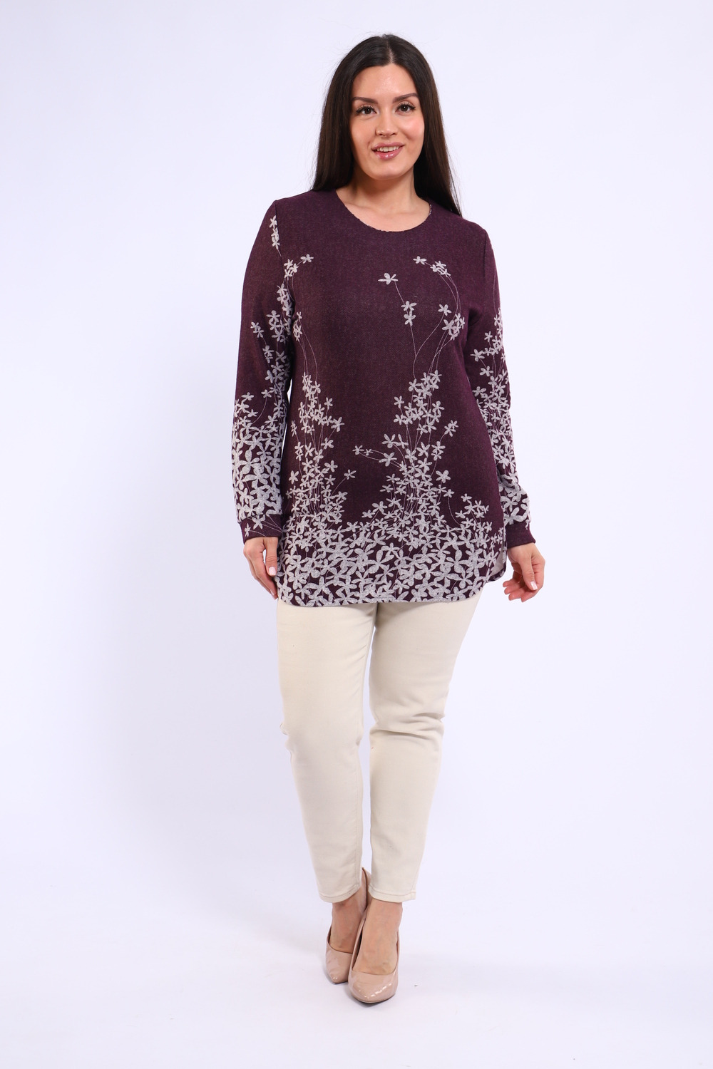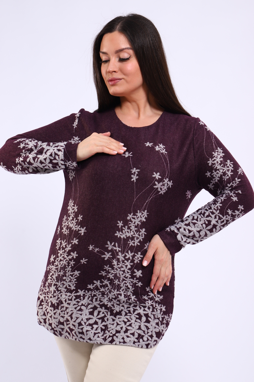 Ищете стильную и удобную тунику? Наша прямая туника с круглым вырезом – идеальный выбор для создания модных образов! Длинные рукава с манжетами добавляют изысканности, а закругленный низ изделия придает силуэту легкость и динамичность. Ключевые особенности: Прямой крой: Обеспечивает свободу движений и комфорт. Круглый вырез: Подчеркивает линию шеи и позволяет дополнять образ различными аксессуарами. Длинный рукав с манжетой: Элегантный акцент, подходящий для разных случаев. Закругленный низ: Современный и стильный элемент дизайна. Цветочный принт: Яркий и актуальный тренд, добавляющий образу свежести и женственности. Эта туника идеально подойдет для создания как повседневных, так и более нарядных образов. Комбинируйте ее с джинсами, леггинсами или юбками для создания неповторимого стиля. Купите прямо сейчас и наслаждайтесь комфортом и красотой!