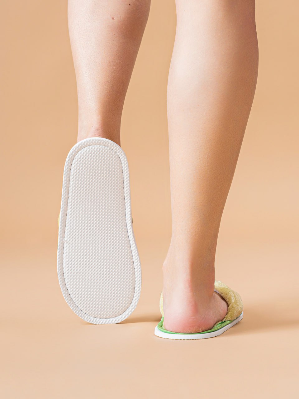 Женские домашние тапочки с прошитой подошвой из ЭВА и верхом из мягкого велсофта – идеальный выбор для комфорта и уюта в вашем доме. Пушистые и плюшевые, они обеспечивают непревзойденное ощущение комфорта и мягкости при каждом шаге. Классическая модель с закрытым мыском и открытой пяткой позволяет ногам дышать и чувствовать себя свободно в любое время дня. Эти пантолеты дополняют ваш образ и подчеркивают вашу индивидуальность. Комнатные тапки – это не просто обувь для дома, они станут вашим надежным спутником во время путешествий, командировок, а также в больнице и роддоме. Компактные и легкие, они без проблем поместятся в вашем багаже или чемодане и всегда будут под рукой, когда вы их нуждаетесь. Эти шлепанцы станут отличным подарком для вашей мамы, бабушки, подруги или коллеги на день рождения, Новый год, 8 марта или новоселье. Широкий размерный ряд позволяет выбрать идеальный вариант для каждого члена семьи или другого получателя подарка. Позвольте себе насладиться максимальным уютом с нашими женскими домашними тапочками. Откройте для себя новый уровень комфорта и стильный дизайн, который подарит вам радость каждый день.