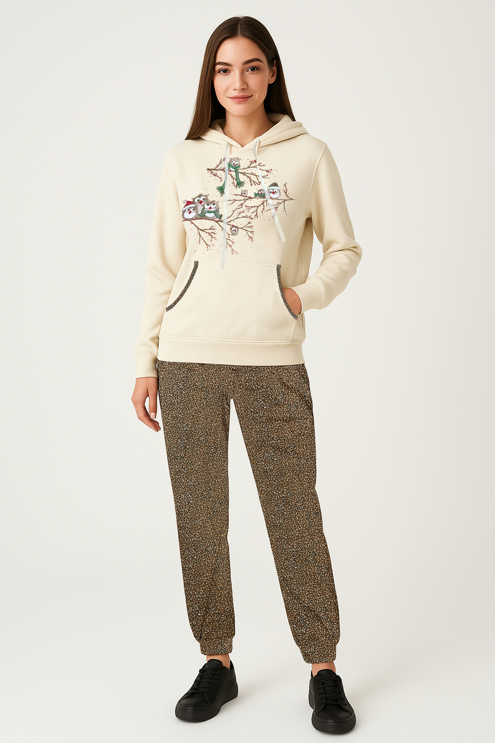 Костюм с брюками и кофтой. Удобные брюки и стильная кофта с капюшоном полуприлегающего кроя создают гармоничный образ, который подойдёт для дома, в дороге или прогулок. Качественные материалы и лаконичный дизайн подчеркнут вашу женственность и обеспечат уверенность в каждом движении. Идеальный выбор для современной женщины!