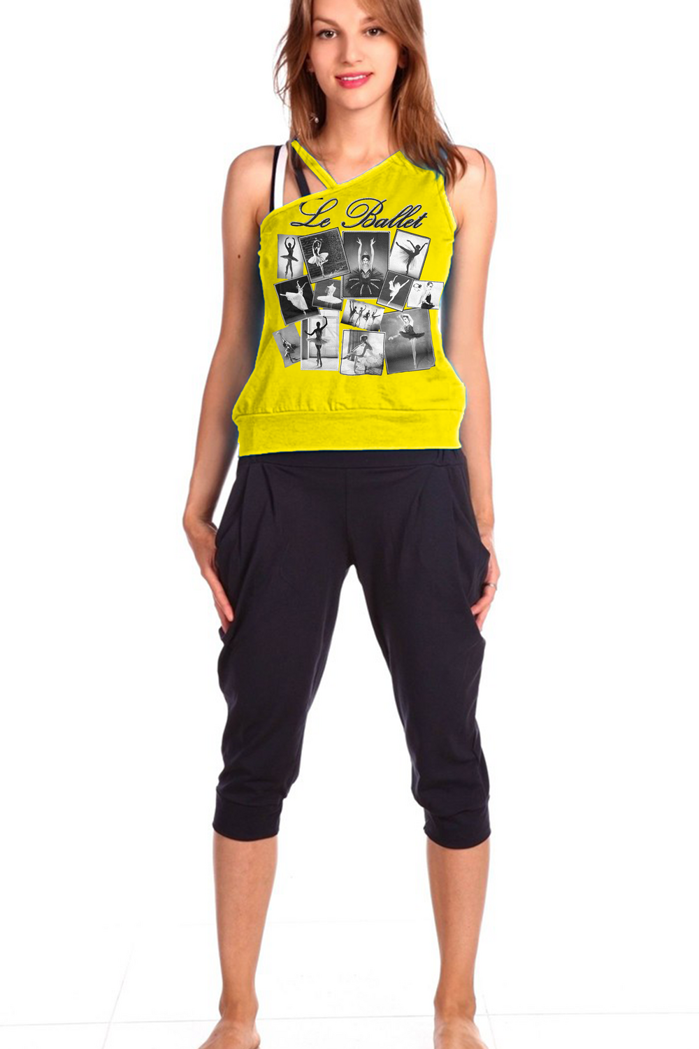 Домашний костюм с бриджами и майкой на бретелях - идеальный комплект для комфорта и стиля! Модель выполнена из премиальной кулирки с лайкрой.