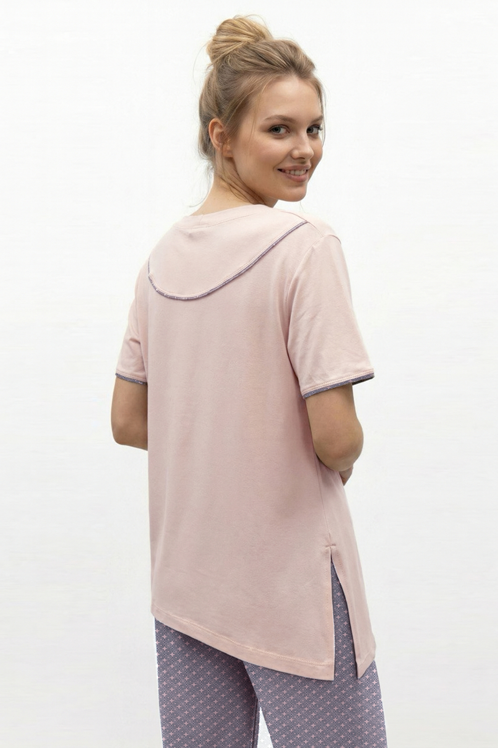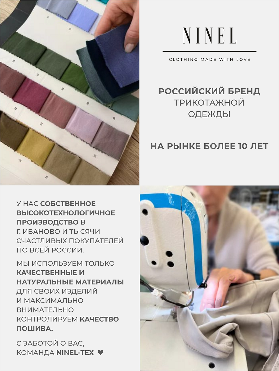 Подарите себе истинное наслаждение комфортом и элегантностью с женским домашним костюмом от бренда NINEL. Этот комплект, состоящий из свободной футболки и удобных брюк, создан для того, чтобы вы чувствовали себя расслабленно и уверенно в любой домашней обстановке. Непревзойденный комфорт премиальной вискозы: Сердце этого костюма – высококачественная вискоза, материал, который дарит ощущение второй кожи. Мягкая, дышащая и приятная на ощупь, вискоза обеспечивает идеальный микроклимат, позволяя телу дышать и сохраняя ощущение свежести в течение всего дня. Ее нежная текстура ласкает кожу, а естественный блеск придает изделию изысканный вид. Свобода и стиль в каждой детали: Футболка свободного кроя: Эта футболка – воплощение непринужденной элегантности. Ее свободный силуэт не сковывает движений, даря максимальный комфорт. Особый акцент – стильные разрезы по бокам, которые добавляют образу легкости и современности, а также обеспечивают дополнительную вентиляцию. Круглый вырез горловины и короткие рукава делают футболку универсальной и подходящей для любого времени года. Удобные брюки: Брюки идеально дополняют футболку, создавая гармоничный и завершенный образ. Их свободный крой обеспечивает максимальную свободу движений, а мягкая резинка на поясе гарантирует идеальную посадку без сдавливания. Брюки прекрасно подходят как для отдыха, так и для выполнения домашних дел. Преимущества костюма NINEL: Премиальная вискоза: Натуральный, дышащий и гипоаллергенный материал для вашего комфорта. Свободный крой: Максимальная свобода движений и ощущение легкости. Стильные разрезы на футболке: Современный акцент, добавляющий образу изюминку. Универсальность: Идеален для дома, отдыха и сна. Элегантный дизайн: Сочетание комфорта и утонченного стиля. Бренд NINEL: Гарантия качества и внимания к деталям. Этот домашний костюм от NINEL – это не просто одежда, это инвестиция в ваше самочувствие и настроение. Позвольте себе окунуться в мир уюта и стиля, где каждая деталь создана для вашего максимального комфорта.