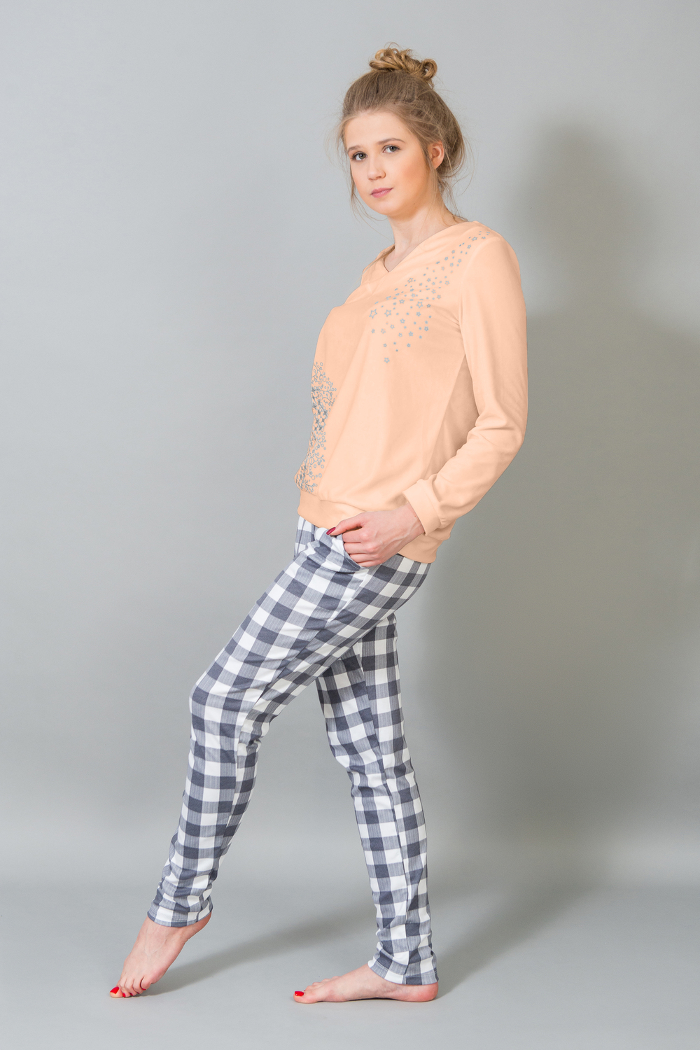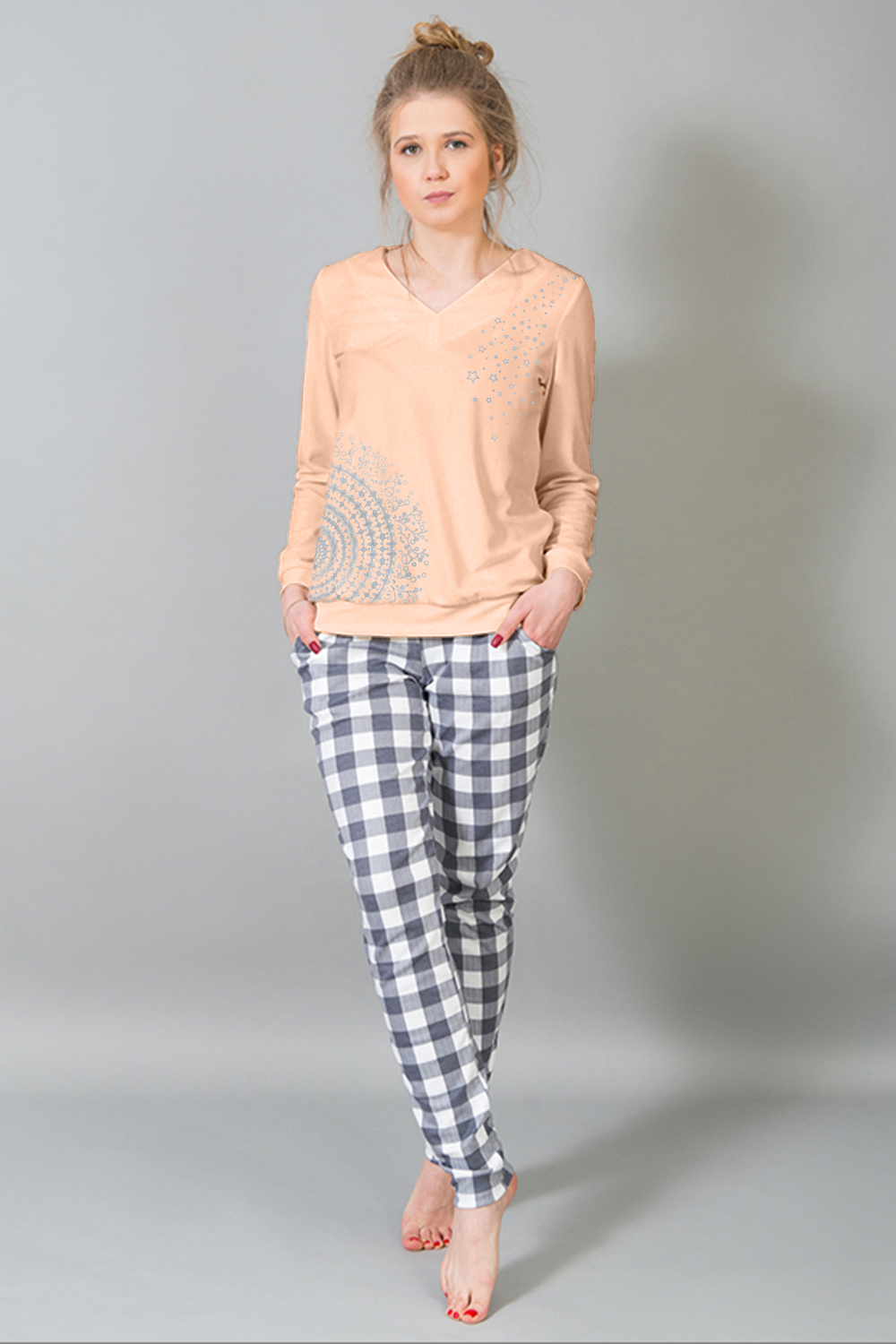 Женский домашний костюм с брюками и кофтой 184 [персиковый]