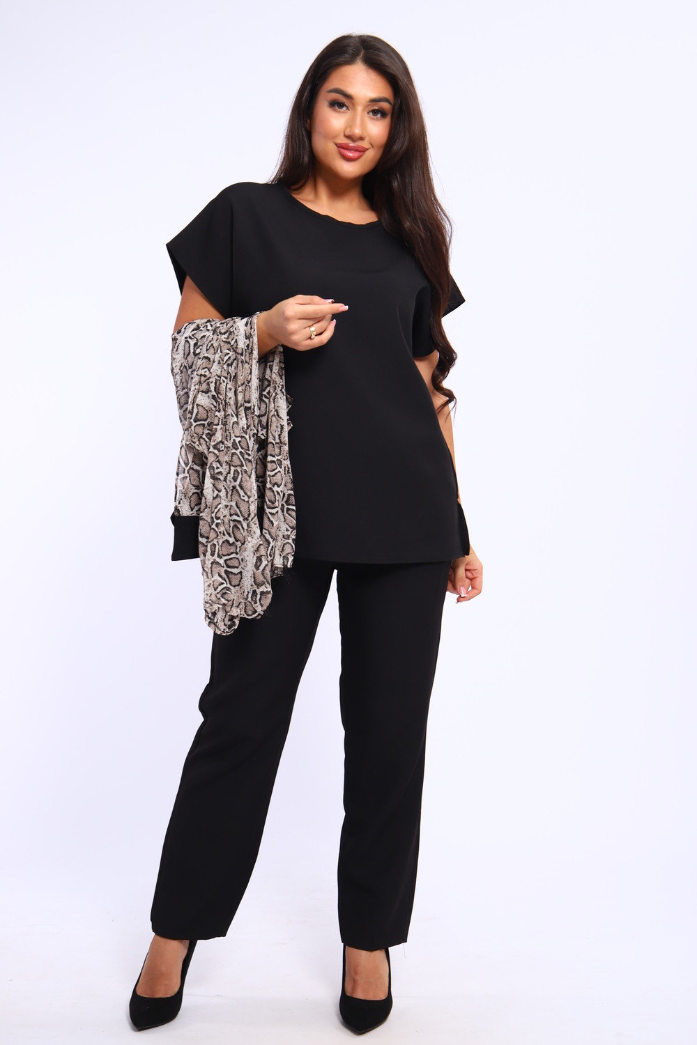Женский брючный костюм Тройка — идеальный выбор для стильных и уверенных в себе женщин. Этот классический костюм подходит как для офисного стиля, так и для более торжественных мероприятий. В комплект входят брюки, футболка и рубашка, что позволяет создавать множество образов, адаптируя их под разные события. Комплект одежды выполнен из высококачественных материалов, что обеспечивает комфорт и долговечность. Мягкий и приятный на ощупь текстиль не сковывает движений, позволяя вам чувствовать себя уверенно на протяжении всего дня. Элегантный дизайн и аккуратный крой делают этот костюм универсальным выбором для любых случаев. Брючный костюм женский больших размеров доступен в двух цветах, что позволяет легко подобрать идеальный вариант для любой фигуры и предпочтений. Брюки, футболку и рубашку можно носить отдельно или в сочетании с другими элементами гардероба, создавая стильные комбинации. Это отличный выбор для деловых встреч, свиданий или романтических ужинов. Не упустите возможность обновить свой гардероб с помощью этого многофункционального решения. Женский комплект тройка станет незаменимым элементом вашего стиля, который позволит вам оставаться в центре внимания. Вы будете выглядеть не только стильно, но и уверенно, что является ключевым аспектом в каждой ситуации. Приобретите этот элегантный костюм и почувствуйте себя королевой в любой обстановке! Ваш новый образ ждет вас — сделайте шаг к своему идеальному стилю с костюмом женским брючным.