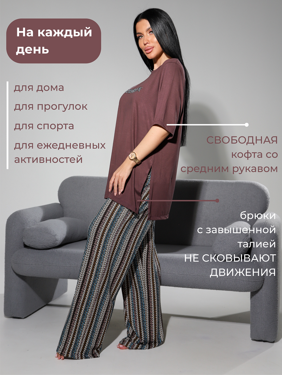 Женский костюм с брюками и футболкой 409 [сливовый]